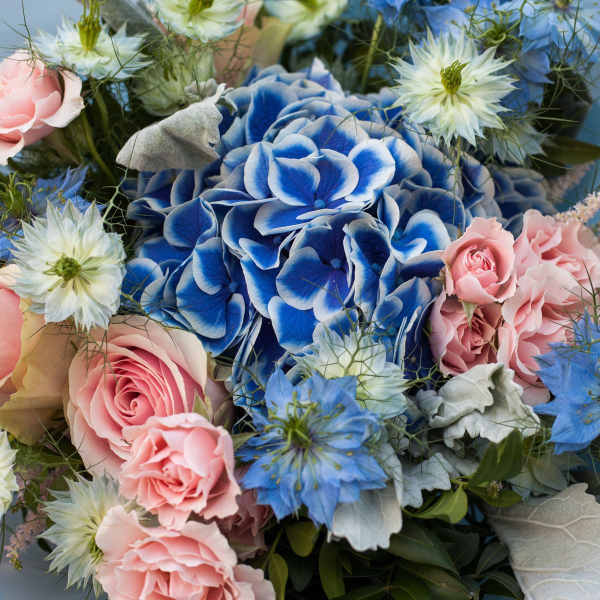 Ищете необычную композицию для поздравления с днем рождения или хотите удивить молодую маму после выписки из роддома? Купите букет в сине-розовых оттенках из свежих цветков гортензии, астильб, кустовых и эквадорских роз в большом количестве с красивыми веточками сенецио серебристого и нигеллы. Матовая упаковка голубого цвета с атласной лентой подчеркивает нежность цветов и делает подарок незабываемым. Поздравить с важным событием можно заказом со сборкой любого размера и открыткой внутри. Фото с ценами есть в каталоге интернет-магазина, а после выбора сочетания оформите доставку к празднику.
