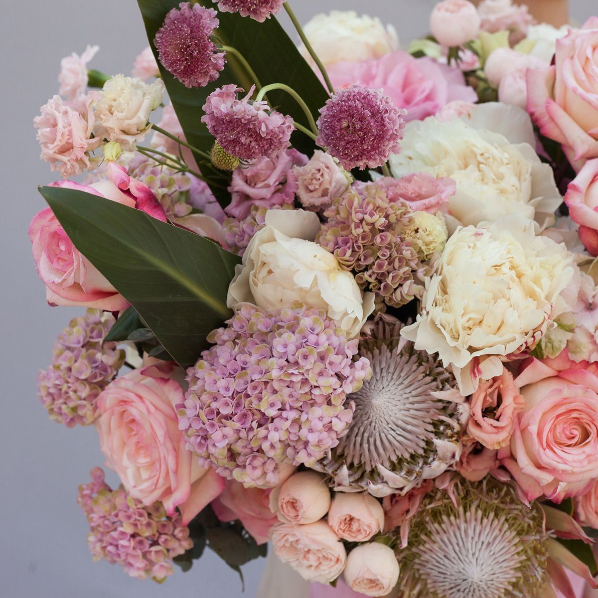 Огромная, невероятно стильная и эффектная композиция в брендированной шляпной коробке. Работа подкупает и внушительными размерами, и интересным сочетанием цветов: роскошные пионы, три вида роз, нежная эустома, экзотическая скабиоза и кортадерия. Дополнительный колорит работе придает лист стрелиция и сочная зелень эвкалипта. Великолепный вариант для эффектных, статусных и запоминающихся поздравлений по любому поводу. Формат букета в коробке - практичный, стильный и востребованный вариант сюрприза, который станет отличным украшением интерьера.