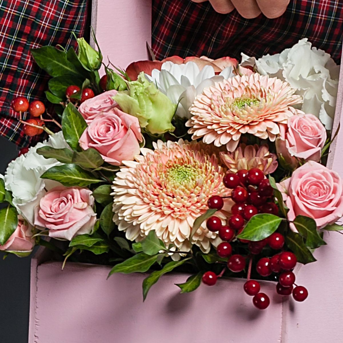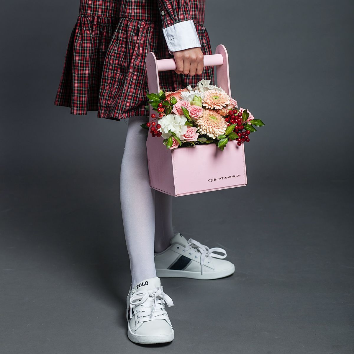 На 1 сентября не стоит выбирать для первоклассника огромные букеты, которые с трудом поднимает ребенок. Я рекомендую купить милую композицию небольшого размера из минигербер, кустовых роз, хризантем и эустомы в стильной розовой корзине. Пастельные оттенки цветов гармонируют с деревянной упаковкой и идеально подойдут в качестве подарка для классного руководителя. Оформите заказ на нашем сайте, и мы сразу же вам позвоним.