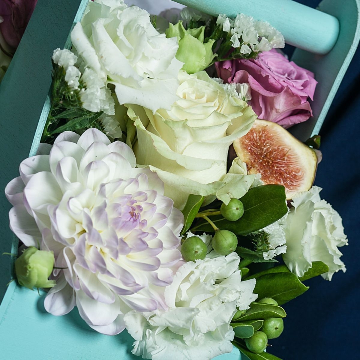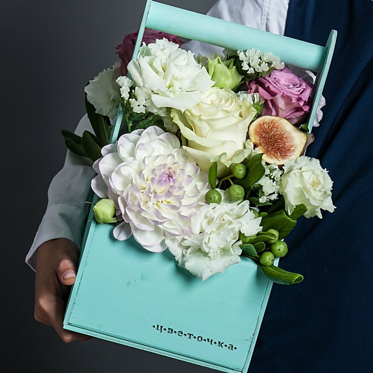 С недавнего времени альтернативой бумаге и полиэтилену стали деревянные корзинки. Кроме небольшого размера и удобства транспортировки, это еще и стильное дополнение композиции. На 1 сентября я рекомендую разместить внутри эффектный букет из георгин, гиперикума, эквадорской розы, эустомы и зеленых веточек статицы. Свежие оттенки цветов придутся по душе любому учителю, а упаковка будет выигрышно смотреться на фото. Оформить заказ по указанной цене на нашем сайте не займет больше двух минут.