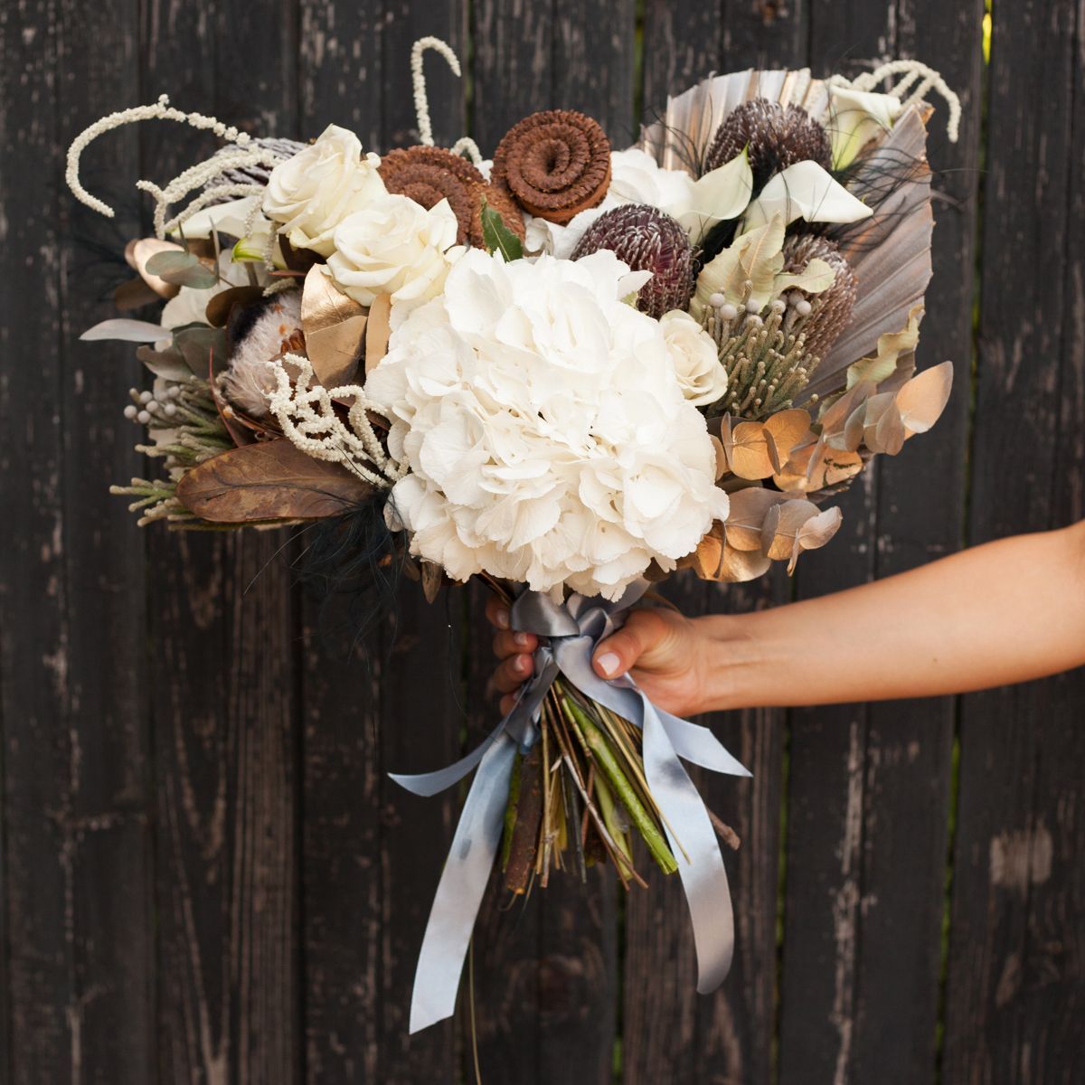 Строгий и лаконичный букет в коричнево-бежевых оттенках — идеальный вариант подарка взрослой и серьезной женщине на юбилей или профессиональный праздник. Композицию можно назвать воплощением осени: здесь собраны белые гортензии и каллы, экзотичные банксии и амаранты, которые добавляют спокойствия и сдержанности. Брунии и эвкалипт подобраны неслучайно — они расставляют акценты и обрамляют скромную красоту других бутонов. Мы решили отказаться от сплошной упаковки, и вместо этого перевязали лентой серебристого цвета. Мы соберем заказ, как на фото, в удобное для вас время. Купить его можно, оставив заявку на сайте.