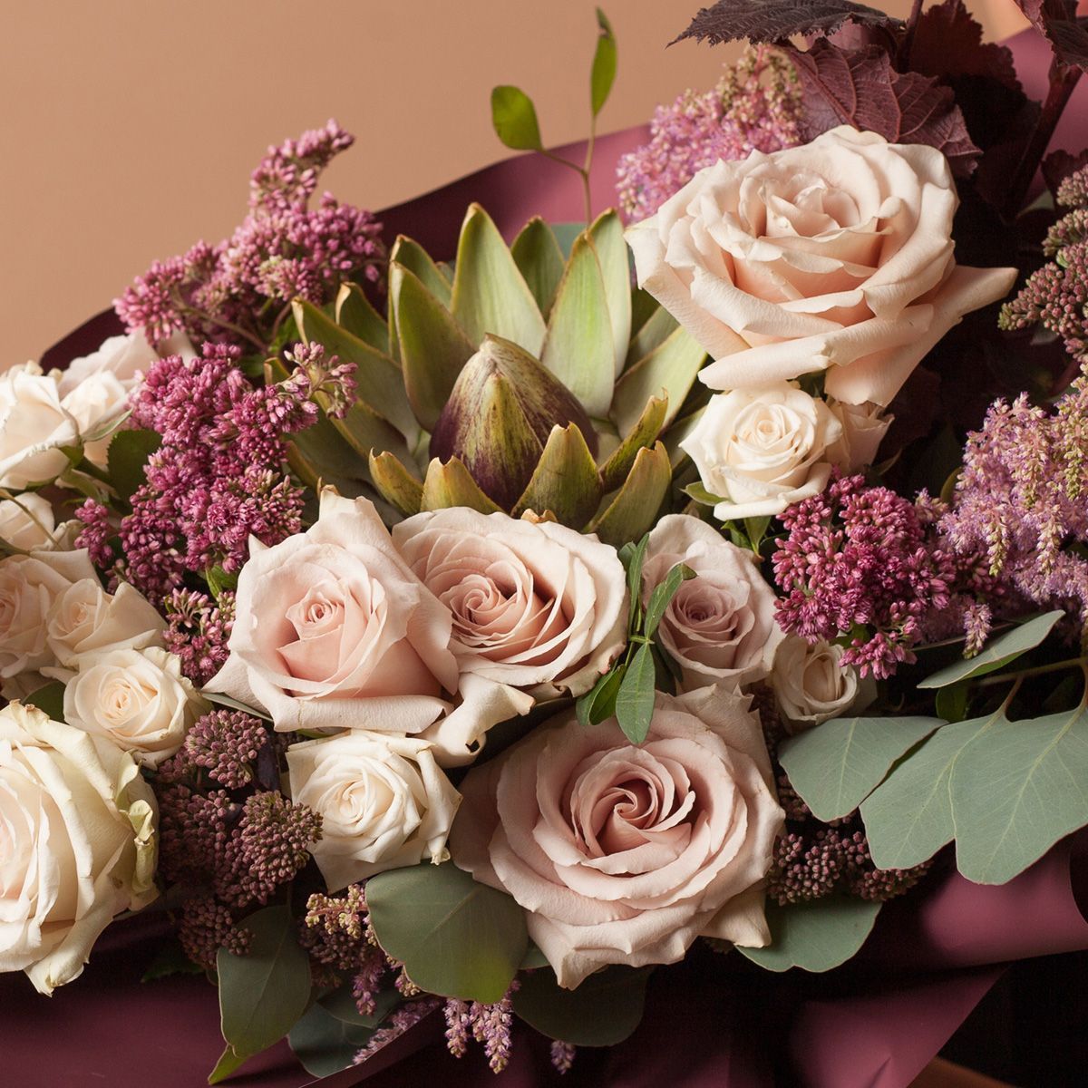 Букет получился просто восхитительным, каждая деталь продумана до мелочей и радует глаз. Немного переживала из-за цвета, но результат превзошёл ожидания — всё идеально. Цветы простояли больше недели, не потеряли свежесть и радовали всё это время. Цветы упакованы бережно, ничего не повредилось, доставка точно в срок. Композиция получилась очень атмосферной, передаёт настроение и выглядит дорого.