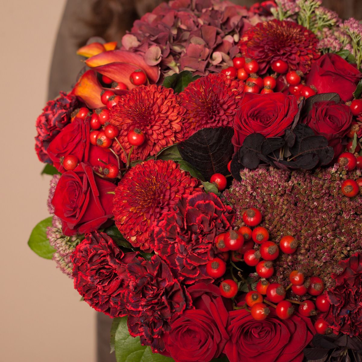 Красный цвет привлекает женщин, а цветы этого оттенка неизменно вызывают трепет. Подарок подойдет не только возлюбленной – поздравить композицией из ярких седума, шиповника, котинуса, хризантем и российских роз, гортензий, гвоздик и калл можно и мать. Такое большое количество свежих цветков от детей поражает воображение. Букет без упаковки с лентой для мамы собирают в любом размере. Предлагаем купить красивое поздравление на важные праздники: день рождения, День матери или другие события. Посмотрите каталог интернет-магазина с фото и ценами и сделайте заказ букета для мамы с доставкой.