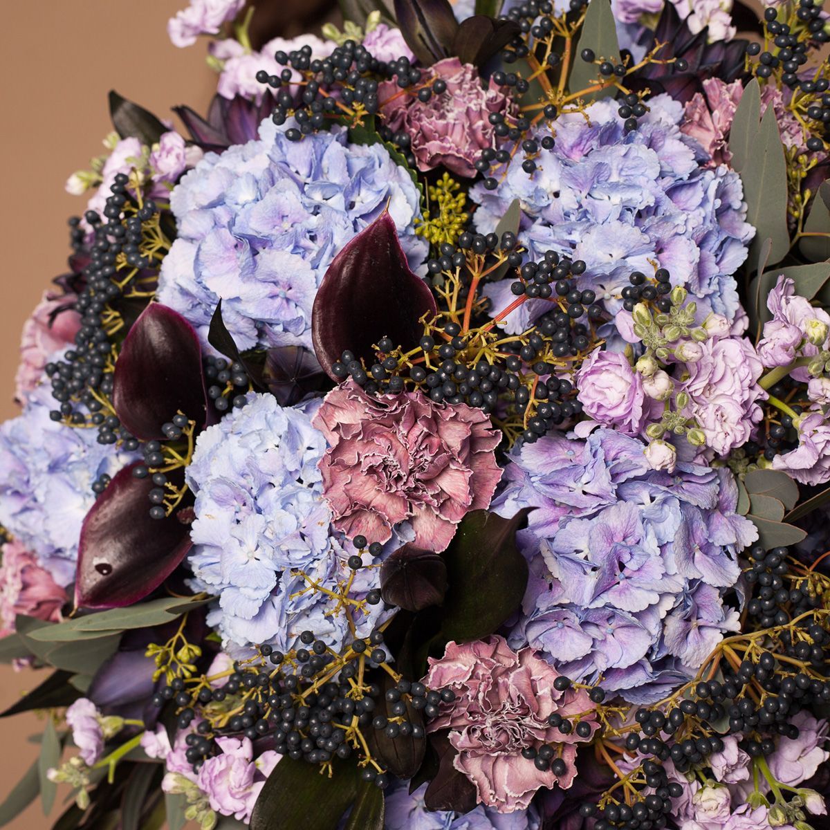 Порадовать маму красивым свежим подарком дети могут не только на День матери, но и на день рождения. Букет в сиренево-зеленых оттенках — эффектное поздравление для женщины, состоящее из цветков гортензий, маттиол, калл с лилиями и гвоздиками. Легкости композиции для матери добавляет вибурнум и эвкалипт мятного цвета. Букет для мамы без упаковки – хороший вариант, чтобы эффектно поздравить любимого человека с важным событием. Флористы могут собрать цветы в любом количестве и размере. Предлагаем посмотреть каталог с фото и ценами, сделать заказ к празднику в интернет-магазине и купить его с доставкой.