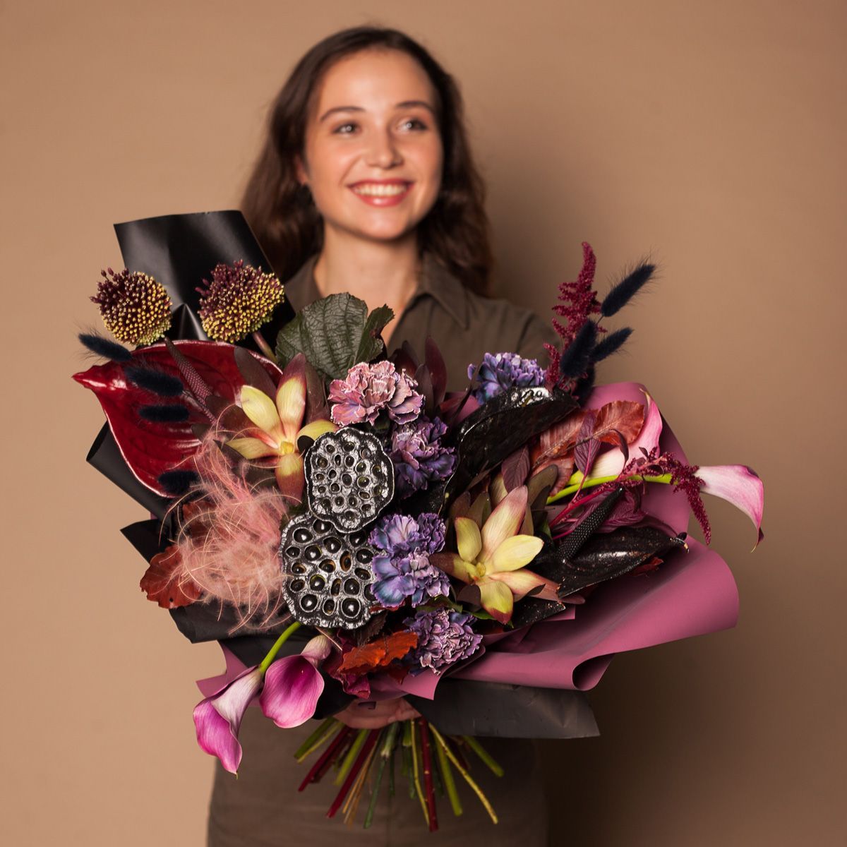 Букет получился просто восхитительным, каждая деталь продумана до мелочей и радует глаз. Спасибо за заботу и красоту, обязательно буду заказывать у вас снова. Приятно удивило внимание к деталям — даже ленточка была подобрана в тон композиции. Флористы молодцы, чувствуется профессионализм и творческий подход в каждой детали. Теперь только у вас буду заказывать, уверена, что результат всегда на высшем уровне. Заказ оформляла онлайн, всё прошло легко и понятно, осталась довольна сервисом.