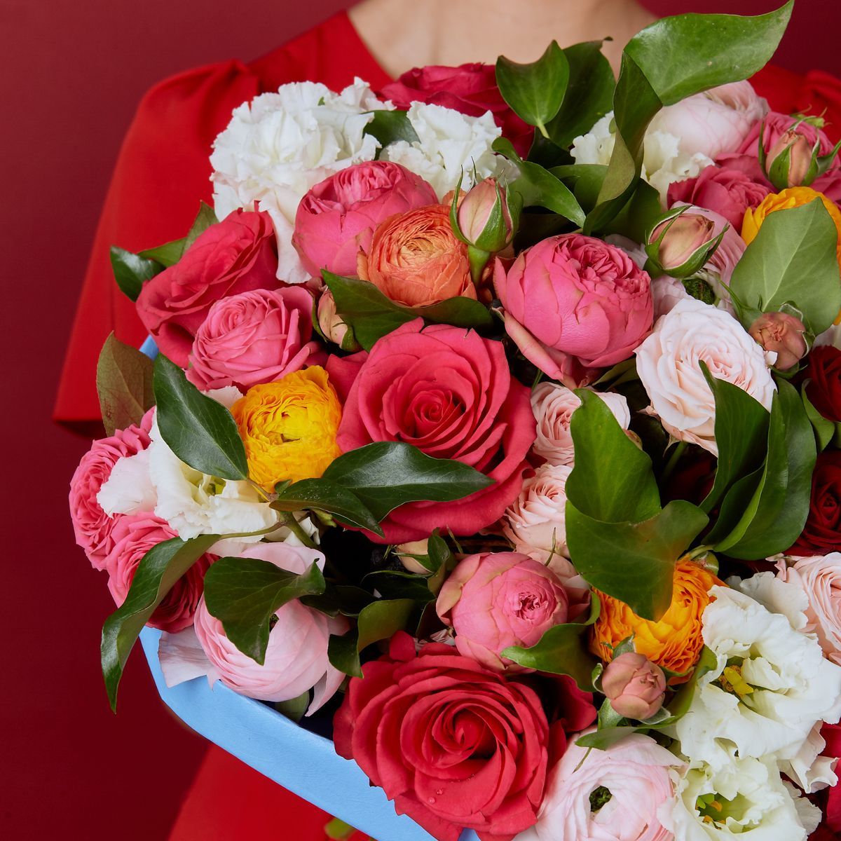 Композиция в розово-красных оттенках — прекрасный подарок для женщины любого возраста на 14 февраля. Основу свежего букета к событию составляют обожаемые девушками кустовые розы и цветки сорта Эквадор в большом количестве, красивые ранункулюсы, эустомы и веточки хедера. Купите поздравление из цветов на романтичный праздник даме, покорившей ваше сердце. Контраст цвета упаковки поразит даже искушенную возлюбленную. Эффектнее поздравить даму букетом на День Святого Валентина в большом размере, как на фото в каталоге интернет-магазина. Доставка цветов любимой занимает 2 часа, вне зависимости от цены к заказу идет открытка. Дополните ее игрушкой с валентинкой, и ваша любовь будет счастлива!