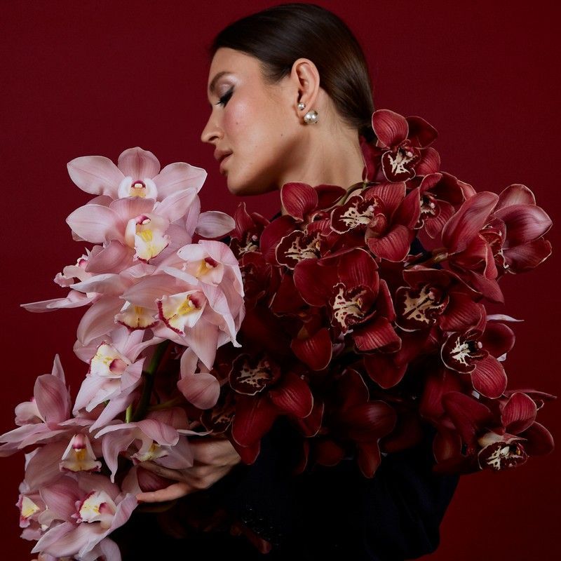 Роскошная натуральная красота орхидей не нуждается в дополнительном украшении. Это настолько самодостаточные, стильные, изящные цветы, что они великолепно выглядят и в монобукетах. В данной работе эффектно сочетаются между собой нежные оттенки зефирно-розового тона и благородные, насыщенно-винные ноты бургунда. Великолепный вариант для особенно торжественных случаев, статусных мероприятий и важных событий. Достойный выбор для тех, кто ценит лаконичность, сдержанность и элегантный аристократизм в современной флористике.