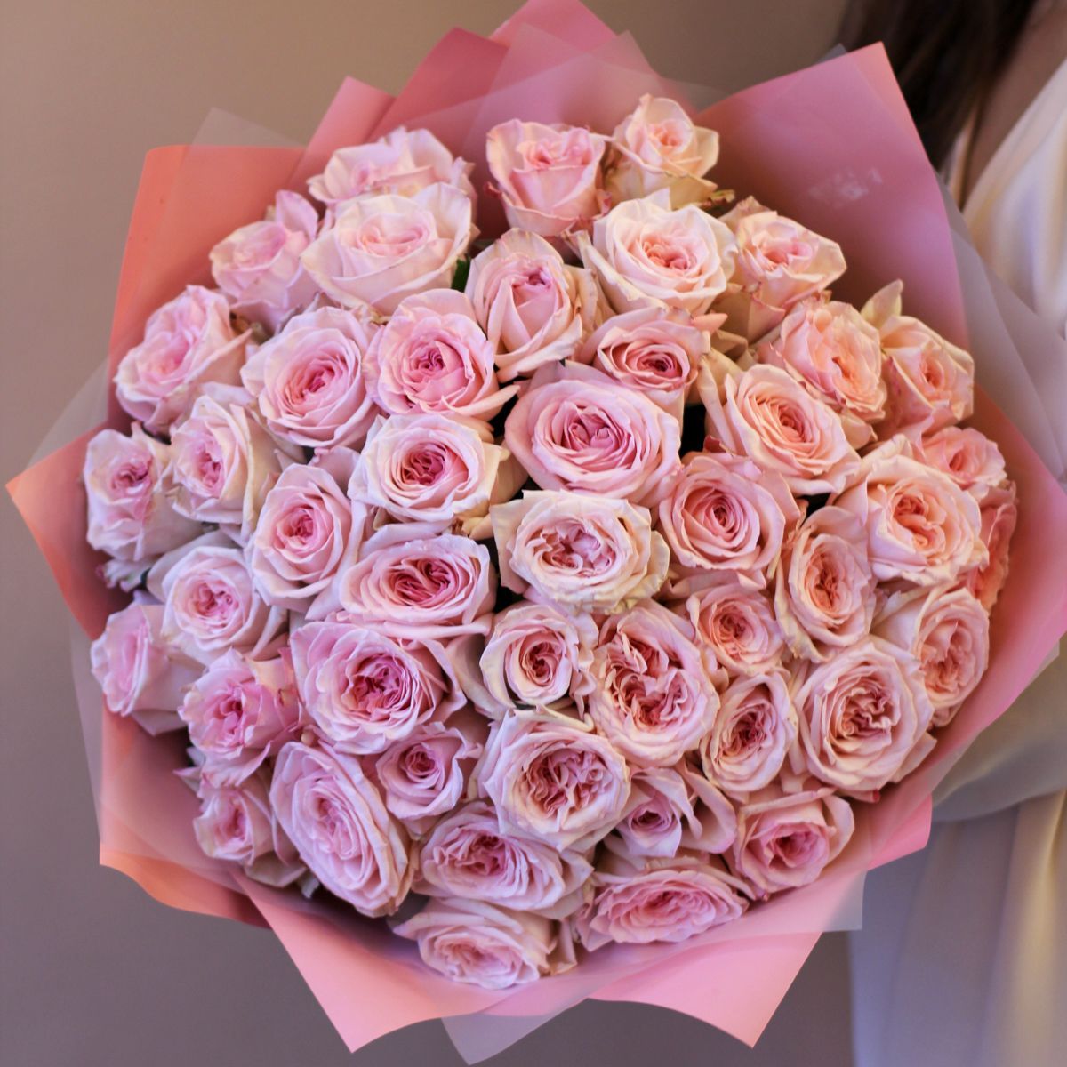 Нежный оттенок садовых роз — эффектный вариант для букета любимой на 14 февраля. Цветочное поздравление из 51 штуки можно назвать воплощением легкости, которой женщинам так хочется в главный праздник любви. Красивые свежие цветки розового цвета обрамлены такой же упаковкой и лентой. Вместе они создают законченную композицию. В подарок к заказу предусмотрена открытка-валентинка в виде сердца для любимой. Такие цветы на Валентинов день точно оценят юные романтичные девушки. Предлагаем по указанной цене купить букет в размере, как на фото, или выбрать в каталоге интернет-магазина сборку из меньшего объема цветов. Поздравить можно с доставкой к событию, дополнив презент игрушкой.