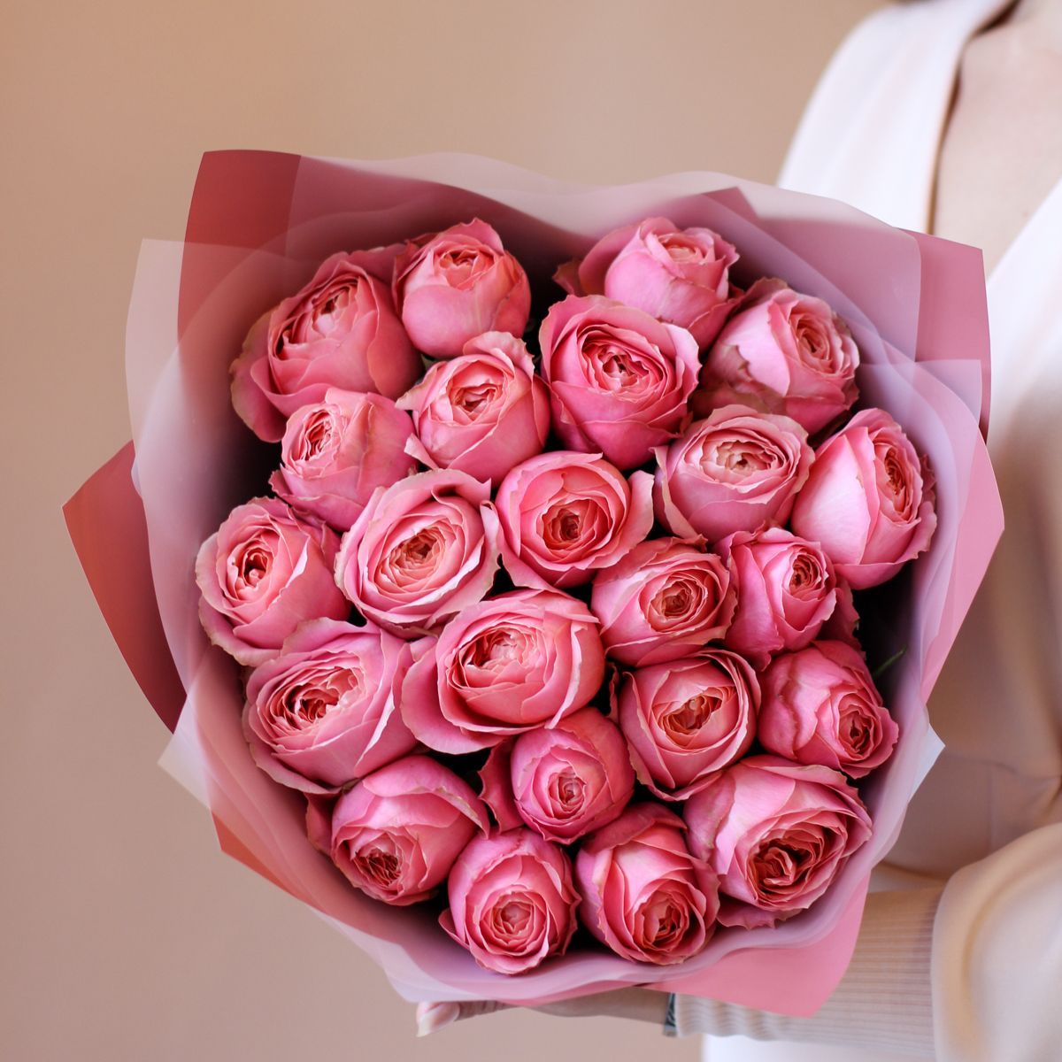 Универсальным букетом на день рождения считаются садовые розы. Ими можно поздравить возлюбленную и подругу, маму и сестру. Красивый розовый цвет выразит признательность и подчеркнет искренность подарка, а свежие цветки покорят нежностью. Композиция перевязана атласной лентой и собрана в матовую упаковку пудрового оттенка, которая делает букет еще более воздушным, почти невесомым. Цветы в каталоге интернет-магазина доступны к заказу на праздник в любых размерах, там же размещены фото и цены поздравлений. Предлагаем купить их в нужном количестве с доставкой к событию и открыткой.