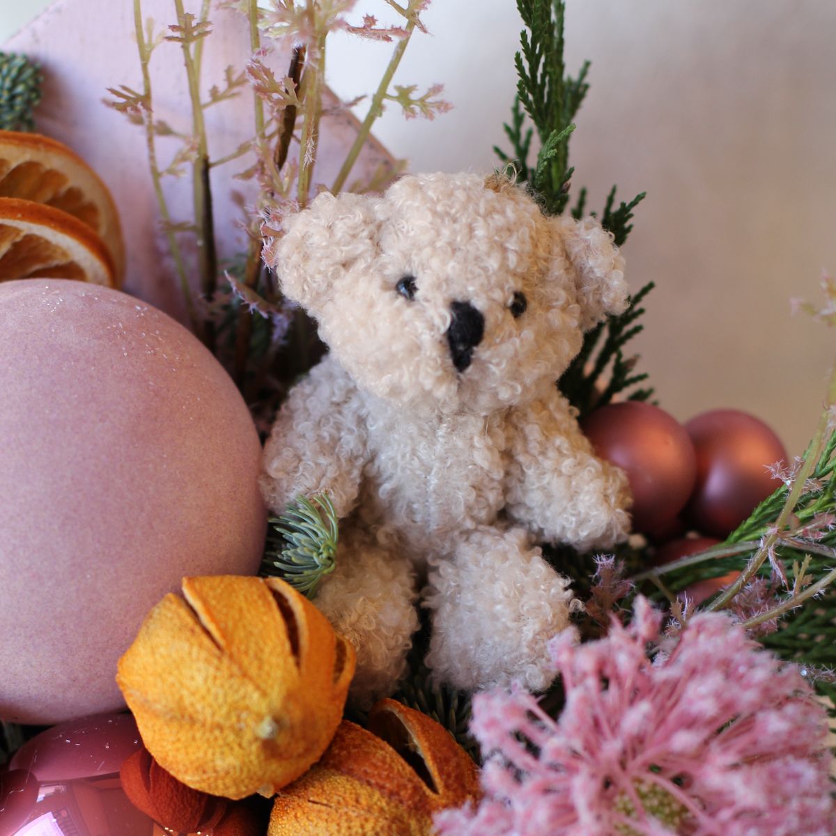 Новогодняя композиция из нобилиса и туи в конверте — популярный подарок на Новый год родственникам и коллегам. Аромат свежих веточек дополняют украшения и новогодние игрушки розовых и оранжевых оттенков в большом количестве: шишки, шары и игрушечный мишка. Оригинальное поздравление добавит интерьеру уюта, а получателю и его семье — праздничного настроения. Чтобы необычно поздравить близких с праздником, предлагаем купить в каталоге интернет-магазина композицию с открыткой. Возможна доставка к событию на любой адрес. На сайте есть размеры, фото и цены доступных к заказу позиций.