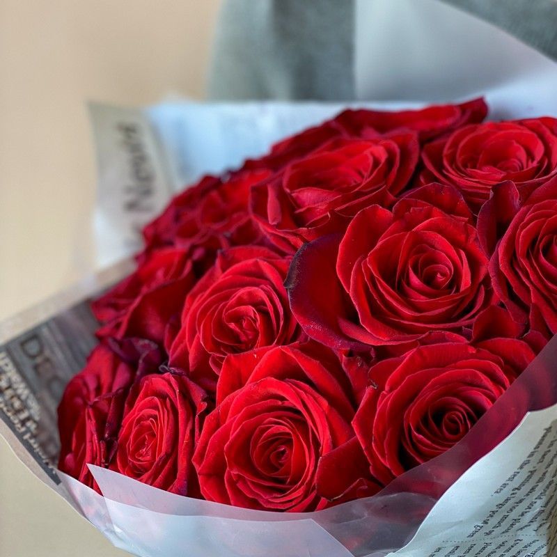 15 роз благородного красного цвета — отличный букет на 1 сентября как для представителя старшего поколения, так и для юного учителя. Тон цветов выражает уважение и признательность, а красивое оформление упаковки в виде газеты с лентой шоколадного оттенка подчеркивает шарм подарка. Эффектную композицию к событию мы соберем с открыткой, на которой можно написать самые искренние поздравления. Купить свежие цветки к празднику в любом количестве с доставкой и поздравить педагога можно через каталог интернет-магазина: для этого подберите размер букета по фото, и цена заказа отразится в корзине.