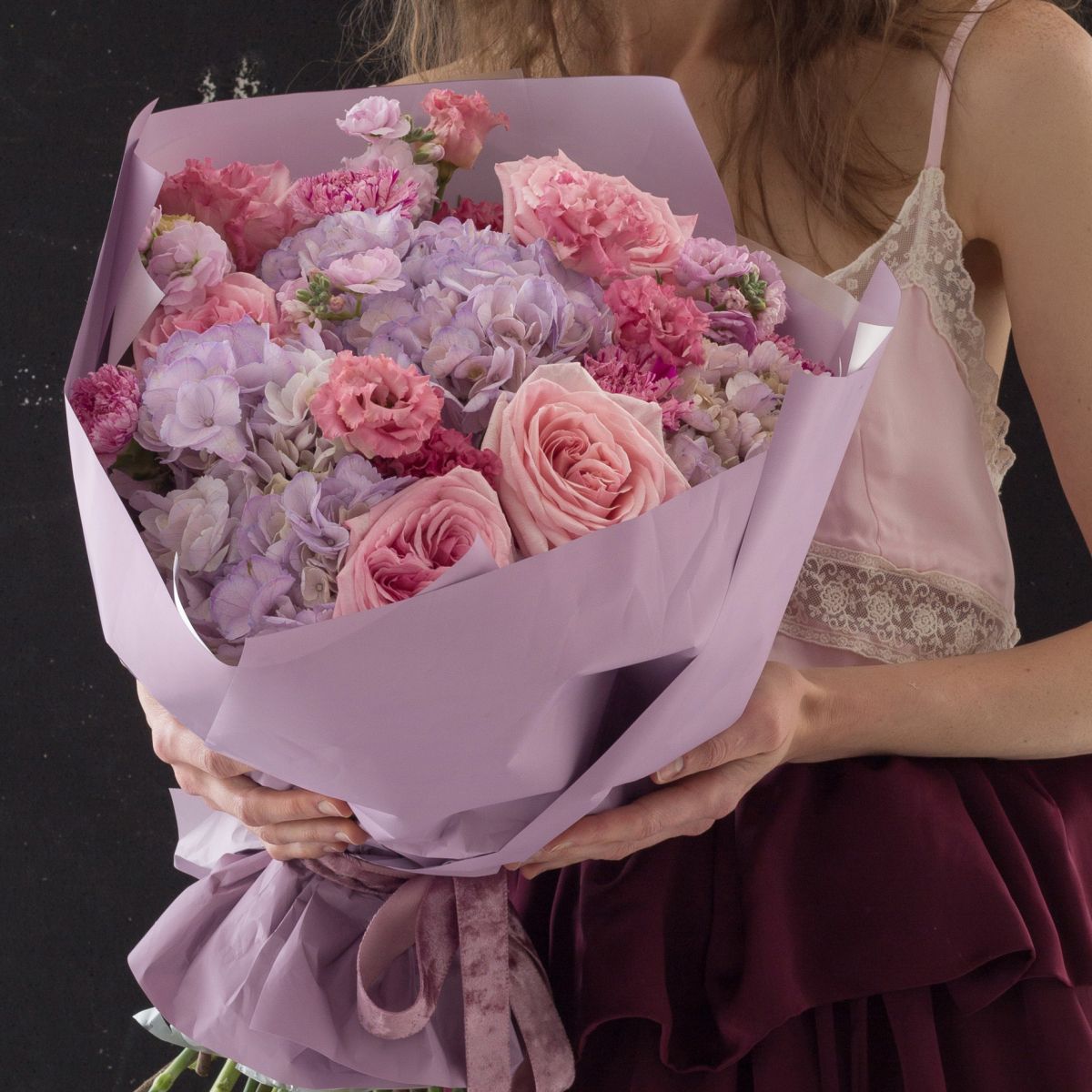 Изысканная композиция, где пышные гортензии сочетаются с душистой маттиолой и классическими гвоздиками, создает неповторимый образ. Этот букет объединяет объемные формы, тонкий аромат и продолжительную свежесть – идеальное трио для ценителей изысканных сочетаний. Особенности композиции: Крупные шапки свежих гортензий. Ароматные кисти цветущей маттиолы. Плотные бутоны долгостоящих гвоздик. Контраст текстур и объемов. Превосходный вариант для: Утонченных подарков женщинам любого возраста. Вечерних мероприятий и свиданий. Дополнения к интерьеру в стиле прованс. Флористическая работа выполняется в пастельной или насыщенной цветовой гамме, с оформлением в эко-стиле. Доступны варианты в корзине или подарочной упаковке. Выбирайте этот ароматный букет для особых моментов – сочетание гортензий, маттиолы и гвоздик создает ощущение праздника, которое остается надолго.