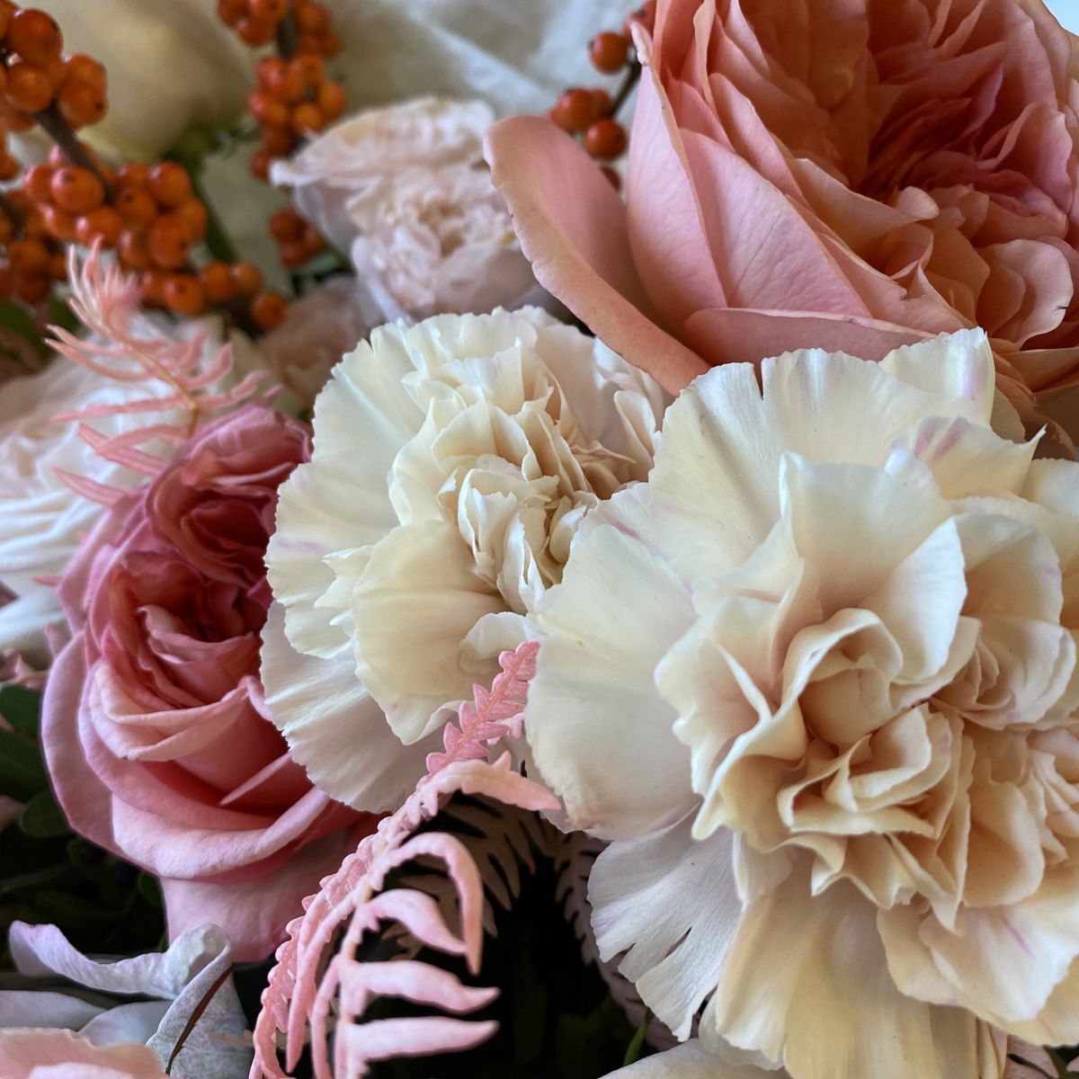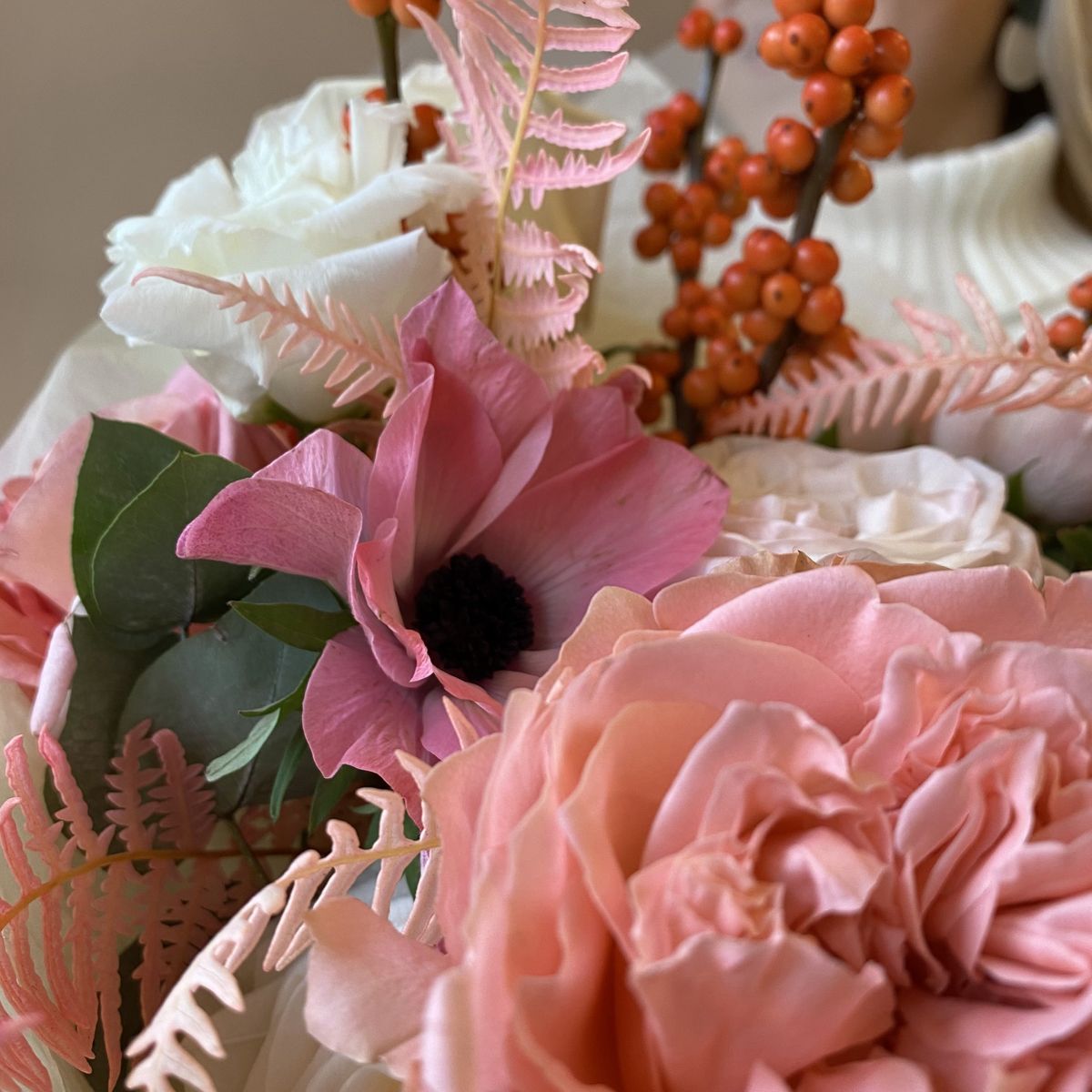 Привычные букеты приелись, а так хочется преподнести очаровательную цветочную композицию в нежных тонах? Бутоны розовых и кремовых роз, подчеркнутые нежностью эустомы в сочетании с ветреницей (анемона) – идеальный вариант для подарка. Изюминкой композиции станет веточка коралловых ягодок илекса. Приятной заключающей ноткой композиции станет зелень рускуса, фисташки и эвкалипта, которая подчеркнет всю утонченность букета. Не кричащего тона упаковка подчеркнет всю прелесть изысканного цветочного шлейфа. Дополнить букет можно открыткой с пожеланиями и теплыми словами в адрес близкого человека.