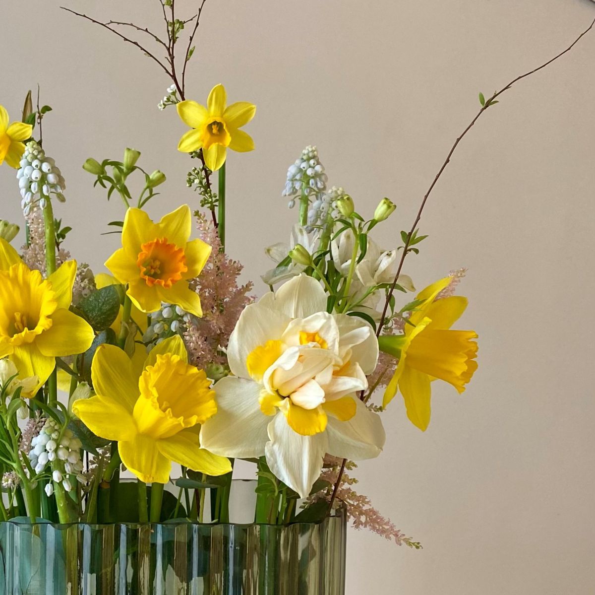 Миниатюрная цветочная композиция, выполненная в лаконичном современном стиле. Это яркий пример того, как могут эффектно и необычно выглядеть классические, любимые многими нарциссы. Благодаря небольшим габаритам, букет великолепно впишется в любой интерьер и формат торжества. Работа выполнена в формате настольной небольшой композиции: практичный выбор, для которого нет необходимости искать подходящую вазу. Отличный выбор для тех, кто предпочитает креативные букеты и свежие современные решения во флористике. Удачный презент для приятых знаков внимания и стильных весенних поздравлений по любому поводу.