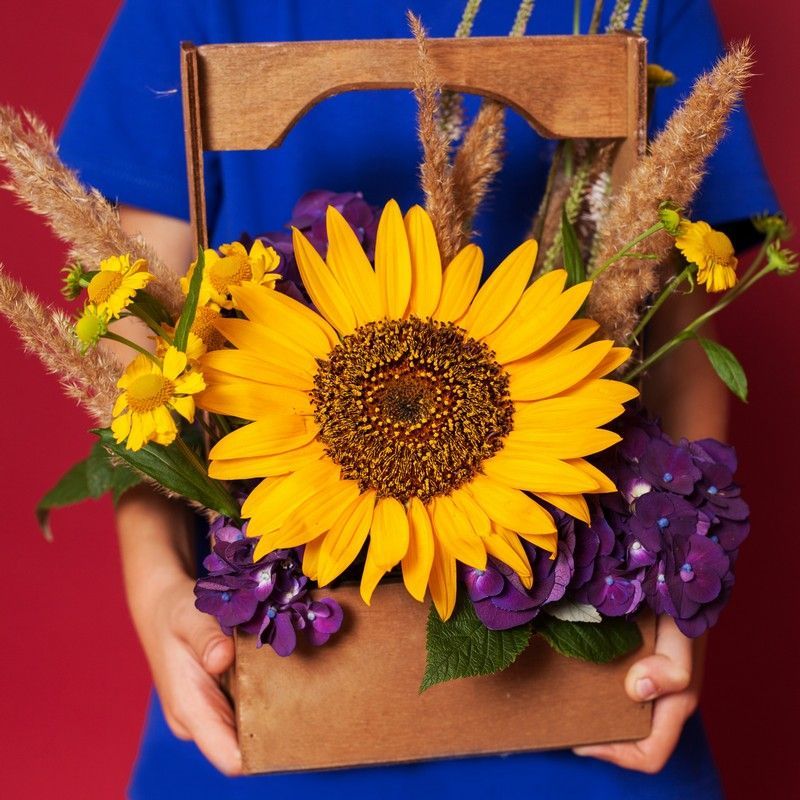 Компактная, эффектная цветочная композиция, главным украшением которой является роскошный гелиантус (подсолнух). Работа представлена в популярном настольном формате, оформлена в стильном флористическом кашпо нейтрального оттенка. Композиция подкупает натуральной, естественной красотой растений, их потрясающей, природной энергетикой. Великолепный вариант для запоминающихся поздравлений, красивых комплиментов, слов благодарности. За счет компактных габаритов букет станет отличным украшением любого интерьера, кабинета.