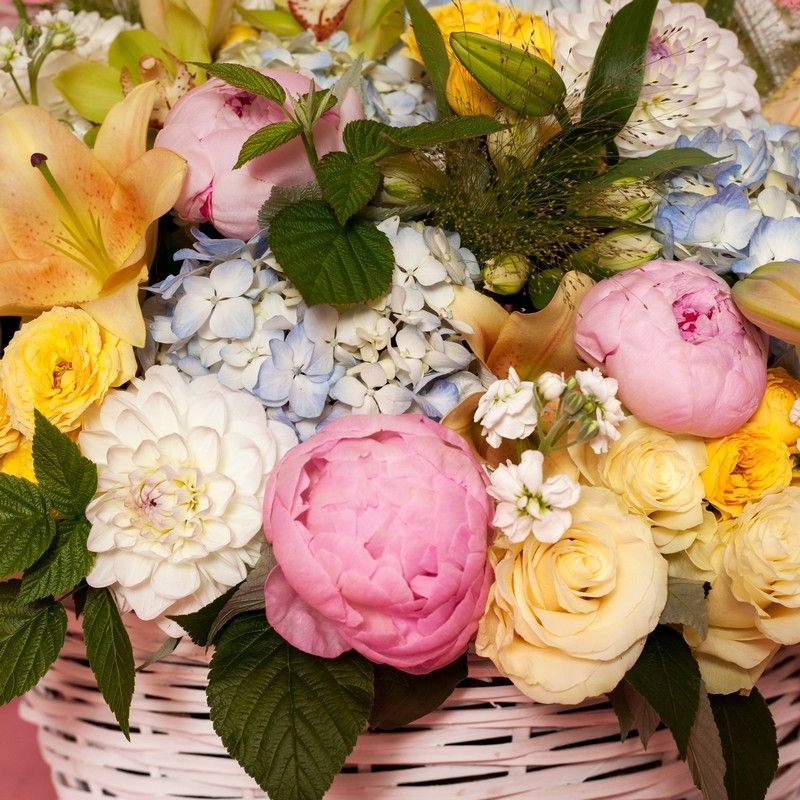 Закажите впечатляющую флористическую композицию в плетеной корзине, где пышные гортензии сочетаются с нежными пионами и благородными розами. Идеальное решение для важных торжеств и памятных событий. Почему стоит купить: Свежие гортензии с крупными соцветиями. Пионы с махровыми лепестками в сезон цветения. Розы премиум-сорта в стадии идеального раскрытия. Готовая композиция в стильной плетеной корзине. Купить цветочную корзину для: Юбилеев и свадеб. Поздравлений руководителей. Романтических подарков. Украшения праздничного интерьера. Впечатляющих VIP-подарков. Композиция оформляется профессиональными флористами с учетом всех пожеланий. Доступна срочная доставка по Москве.