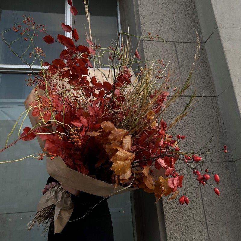 Доставка прошла быстро и аккуратно, курьер был вежлив и улыбчив, что особенно приятно. Флористы молодцы, чувствуется профессионализм и творческий подход в каждой детали. Заказ оформляла онлайн, всё прошло легко и понятно, осталась довольна сервисом. Композиция получилась очень атмосферной, передаёт настроение и выглядит дорого. Упаковка выполнена очень красиво, чувствуется, что флористы вложили душу в работу. Букет получился просто восхитительным, каждая деталь продумана до мелочей и радует глаз.