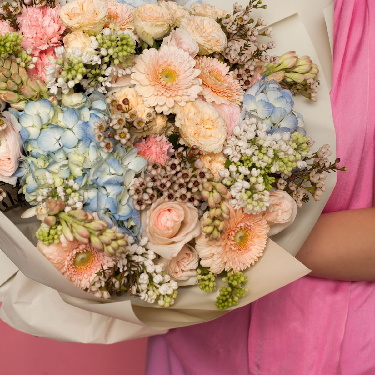 Этот букет из гортензий, гербер и сирени звучит как мажорный аккорд летнего утра, где пушистые гортензии ведут партию, солнечные герберы задают ритм, а душистые гроздья сирени добавляют сладкие ноты. Купить такой букет — значит принести в дом энергию цветущего сада в самый его радостный момент. Заказать эту композицию стоит тем, кто ищет баланс между пышностью и легкостью — объемные гортензии, яркие герберы и нежная сирень создают идеальную летнюю палитру. Особенно хорош букет для поднятия настроения — он одинаково эффектно смотрится в городской гостиной и на дачной веранде. Доставка по Москве осуществляется в специальной упаковке, сохраняющей аромат и форму каждого цветка.