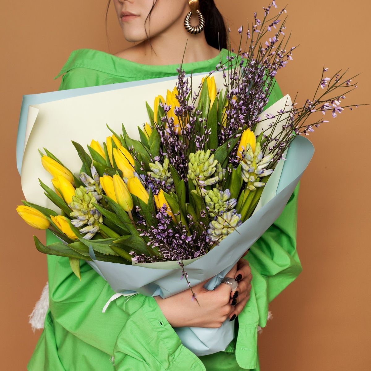 Флористы молодцы, чувствуется профессионализм и творческий подход в каждой детали. Композиция выглядела даже лучше, чем на фотографии, просто невероятное качество обслуживания. Теперь только у вас буду заказывать, уверена, что результат всегда на высшем уровне. Цветы упакованы бережно, ничего не повредилось, доставка точно в срок. Приятно удивило внимание к деталям — даже ленточка была подобрана в тон композиции. Немного переживала из-за цвета, но результат превзошёл ожидания — всё идеально.
