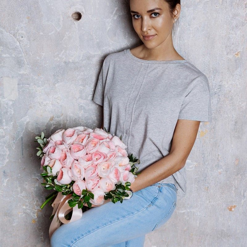 Оригинальный, элегантный и стильный букет из романтичных ранункулюсов нежно-розового оттенка. Работа представлена в универсальном среднем размере, станет великолепным украшением любого торжества, мероприятия или события. Отличный выбор для романтических признаний и демонстрации трепетный чувств. Букет выполнен в классическом дизайне, не перегружен лишними акцентами. Дополнительно красоту и хрупкость ранункулюсов подчеркивает свежая зелень питтоспорума, на фоне которой бутоны выглядят особенно нежными и изящными.