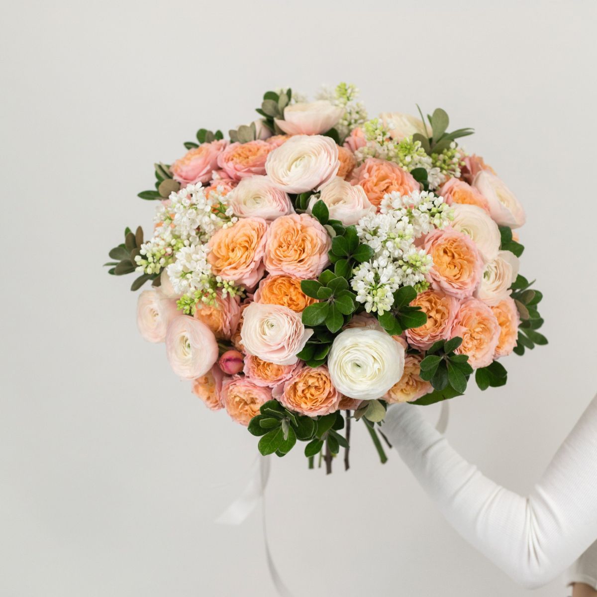 Букет из ранункулюсов, сирени и роз №2016 большого размера