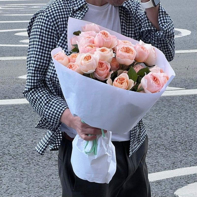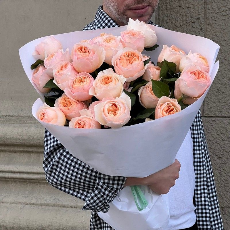 Нарядный, утонченный, женственный букет из роскошных крупных пионовидных роз красивого розового оттенка с коралловым сочным тоном. Композиция оформлена в классическом стиле, для нее выбрана лаконичная белоснежная основа, создающая особый ореол торжественности и праздничного лоска. Удачный вариант для тех, кто предпочитает проверенную годами классику, но с акцентом на современность. Букет состоит из 25 крупных роз, имеет внушительные габариты, благодаря чему великолепно украсит собой любое торжество или мероприятие.