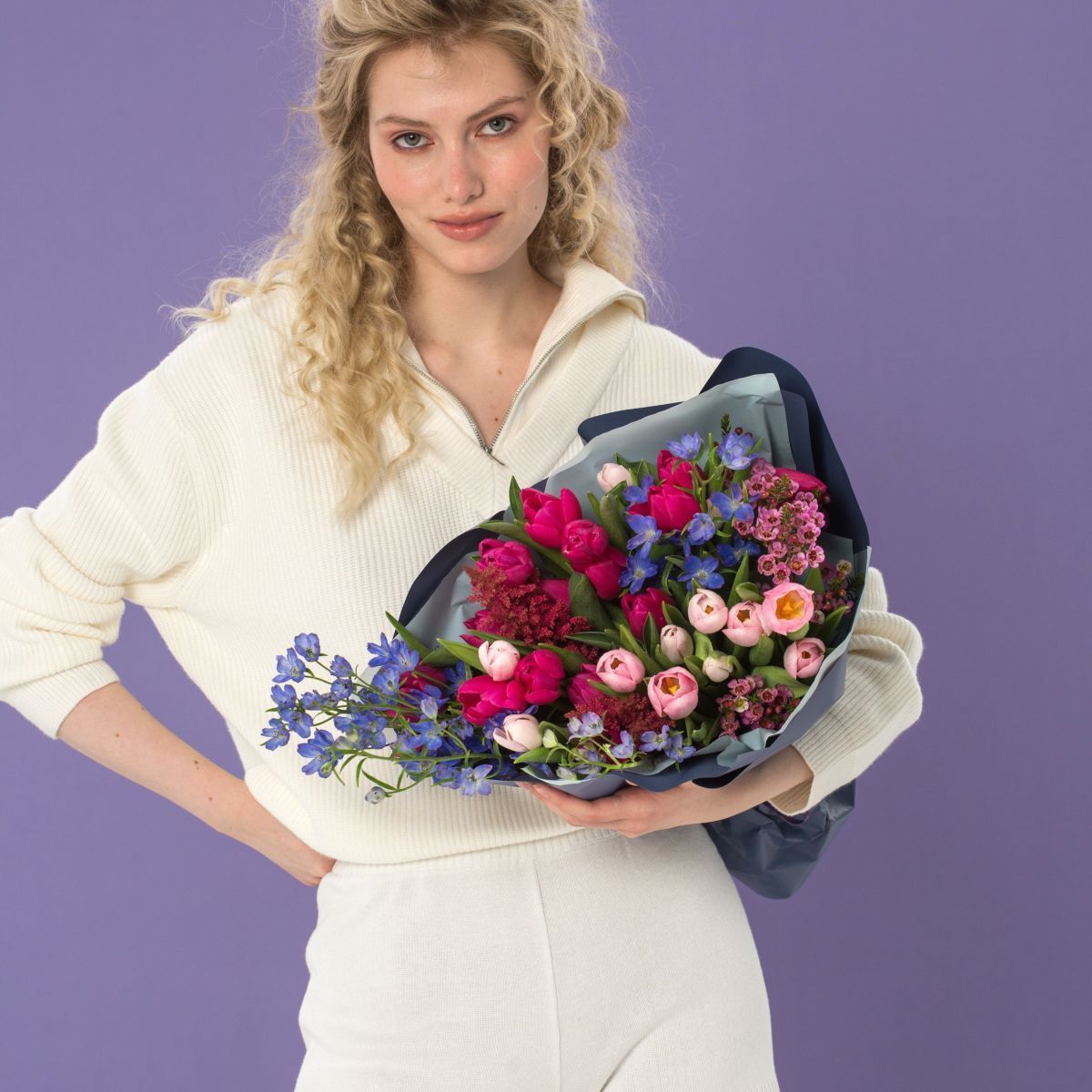 Букет отлично подошёл под мой запрос, выглядит изысканно и современно. Сервис на высоте, сотрудники всегда на связи и готовы помочь с выбором. Флористы молодцы, чувствуется профессионализм и творческий подход в каждой детали. Заказ оформляла онлайн, всё прошло легко и понятно, осталась довольна сервисом.