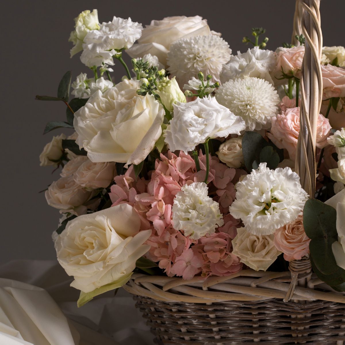 Подарите незабываемые эмоции с этой пышной композицией в плетеной корзине, сочетающей благородные кустовые розы, ароматную маттиолу и нежные эустомы. Идеальный выбор для особых случаев и важных персон. Почему стоит купить: Кустове розы премиального качества. Душистые кисти цветущей маттиолы. Свежие эустомы с шелковистыми лепестками. Готовая композиция в стильной плетеной корзине. Купить корзину роз с маттиолой для: Юбилеев и торжественных мероприятий. Поздравлений руководителей. Романтических подарков. Украшения свадеб и фотосессий. Создания эффектного интерьерного акцента. Композиция оформляется профессиональными флористами с учетом всех пожеланий. Доступна срочная доставка по Москве в день заказа. Купить большую корзину с кустовыми розами, маттиолой и эустомой можно на нашем сайте – гарантируем свежесть цветов и безупречное качество оформления.