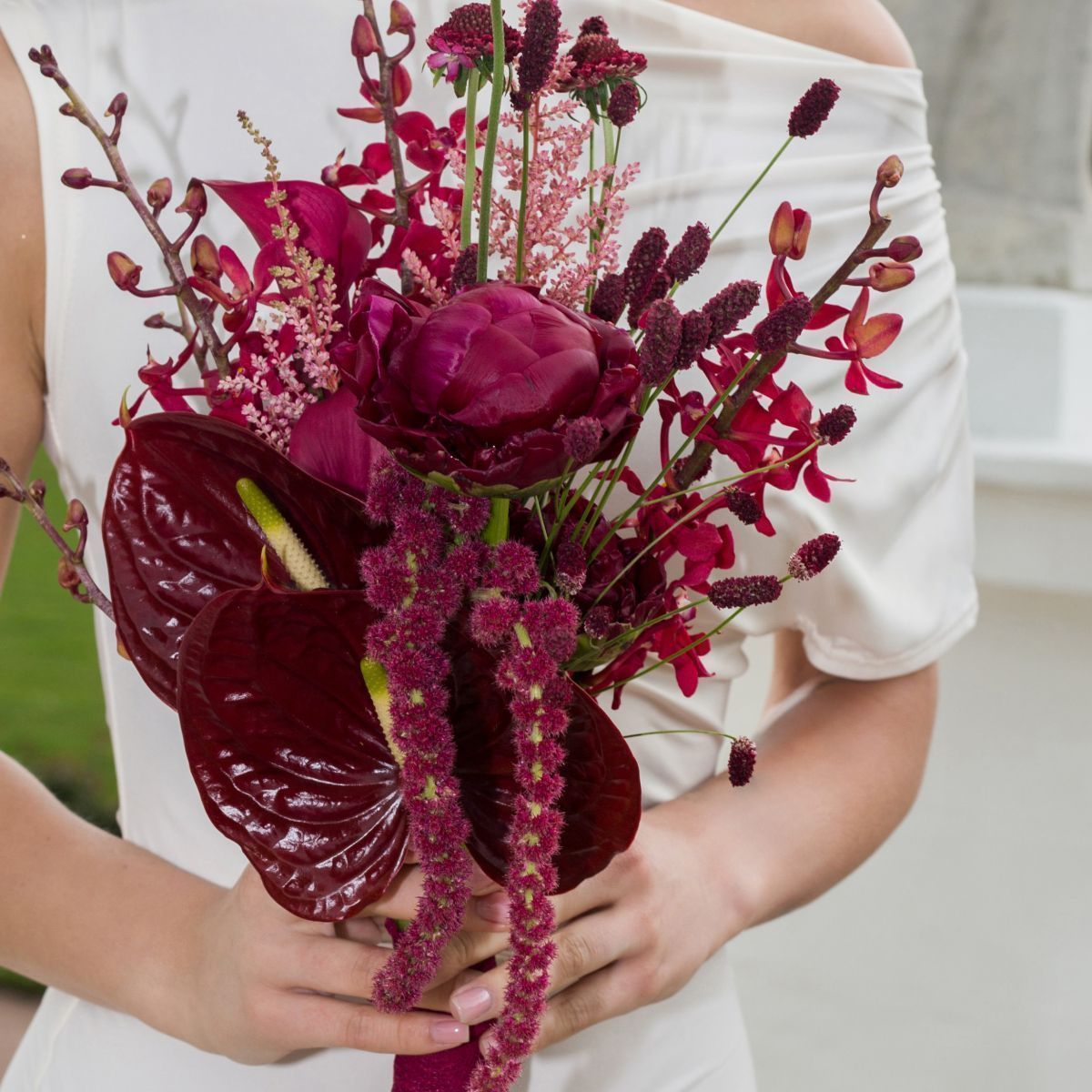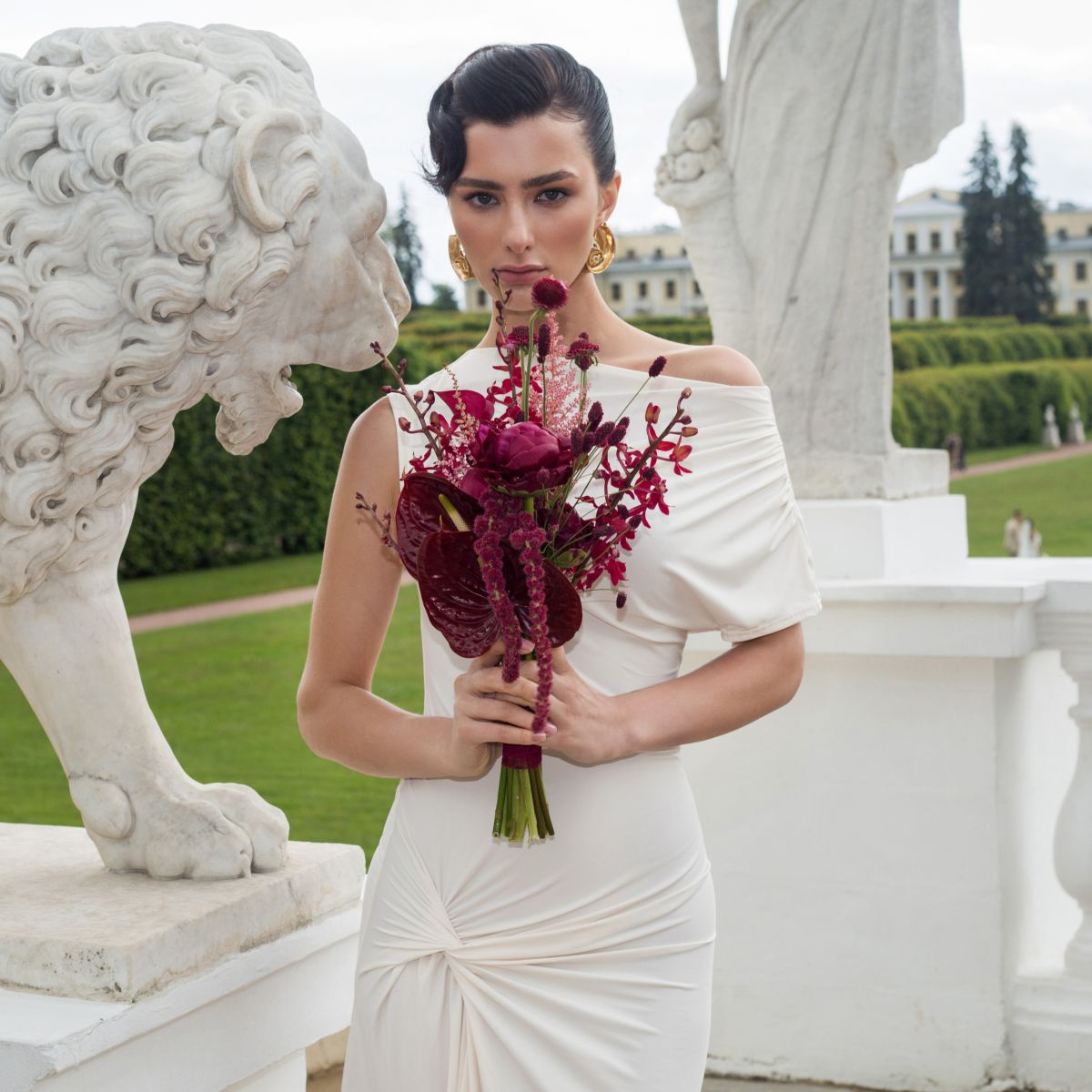 Строгая графика гладких калл встречает воздушное кружево серебристой ашины и бархатную негу пышных пионов. Игра текстур и форм: элегантная вертикаль, ажурные шары, объемные облака. Символ гармонии силы и нежности. Идеален для взыскательных ценителей, юбилеев или стильных событий. Свежий, стойкий, незабываемый акцент.
