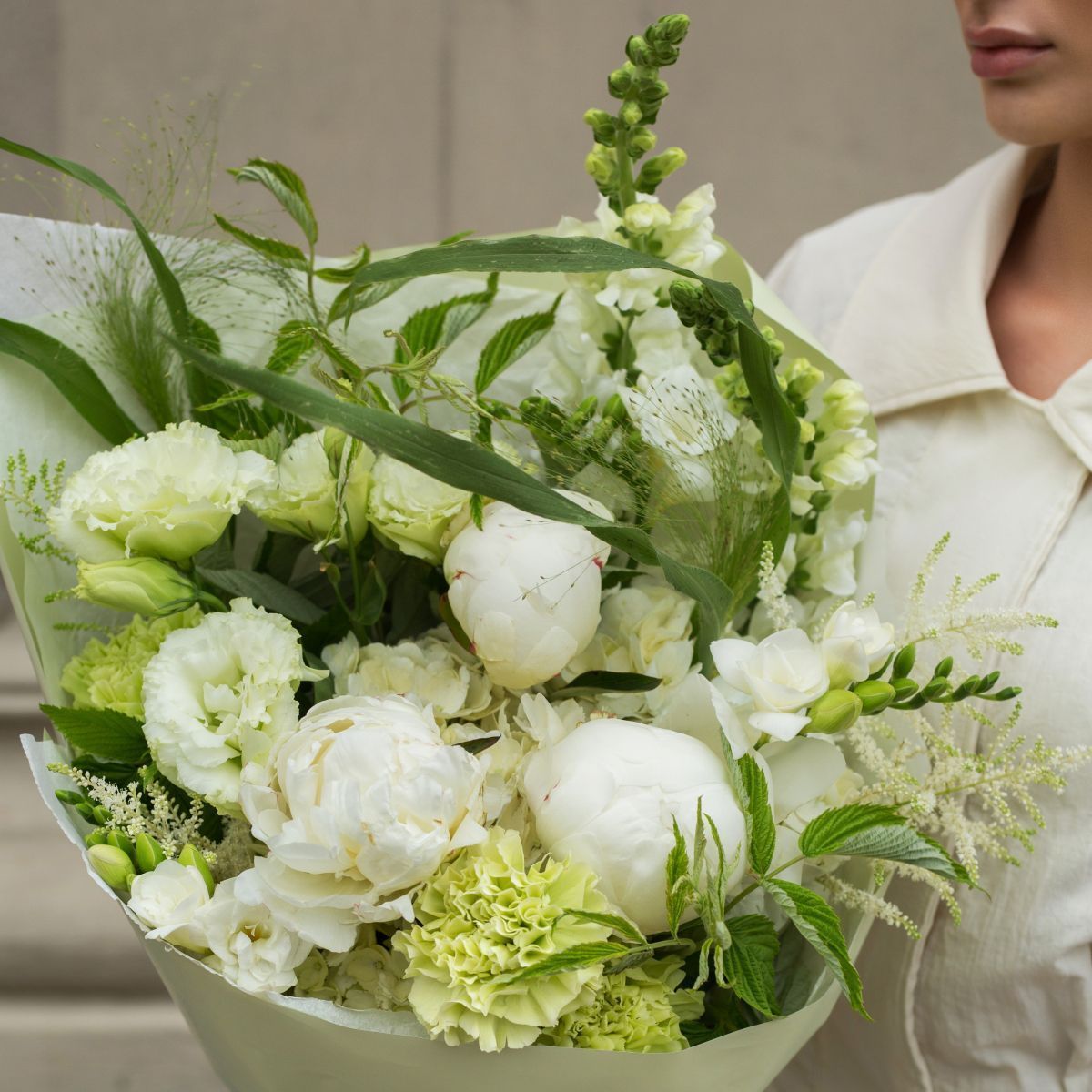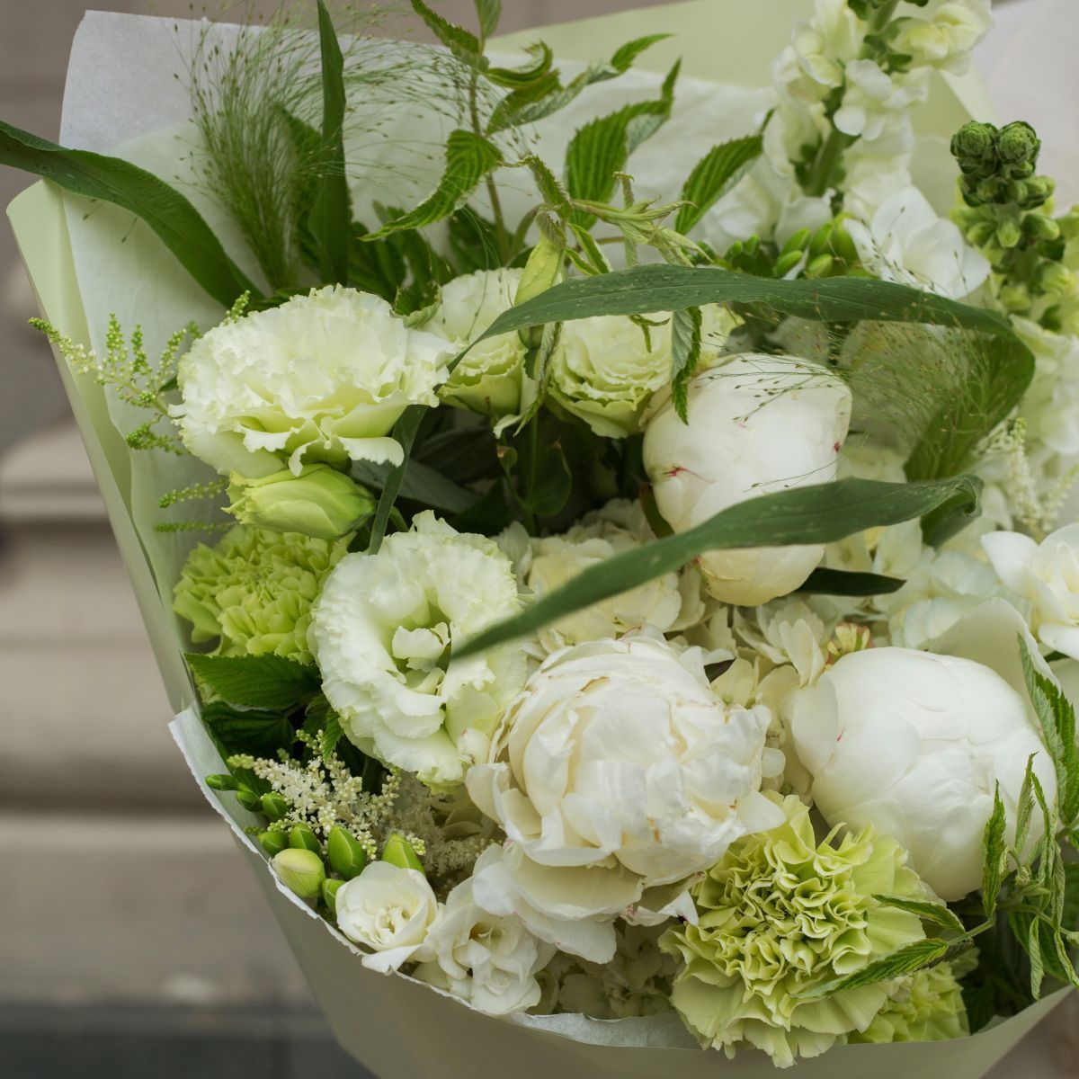 Пышные шары гортензии, бархатные облака пионов и шелковистые колокольчики эустомы создают объемную гармонию. Контраст фактур: кружевная невесомость, царственная пышность и изящная грация. Символ щедрости, любви и чистоты. Свежий, стойкий, без навязчивого аромата. Идеален для свадеб, юбилеев или как элегантный акцент в интерьере.