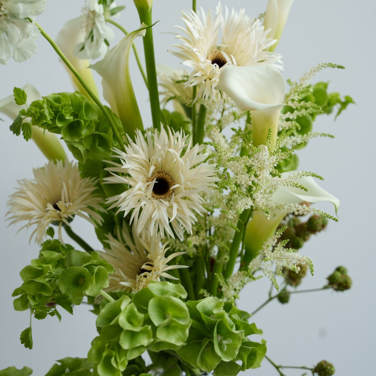 Строгие линии гладких калл и пушистые метёлки астильбы создают вертикальный ритм. Воздушные «подушечки» скабиозы смягчают композицию, а солнечные герберы дарят теплоту. Игра текстур: бархат, шёлк, кружево и атлас. Символ гармонии силы и радости. Стойкий, гипоаллергенный. Идеален для подарка эстетам или современного интерьера.