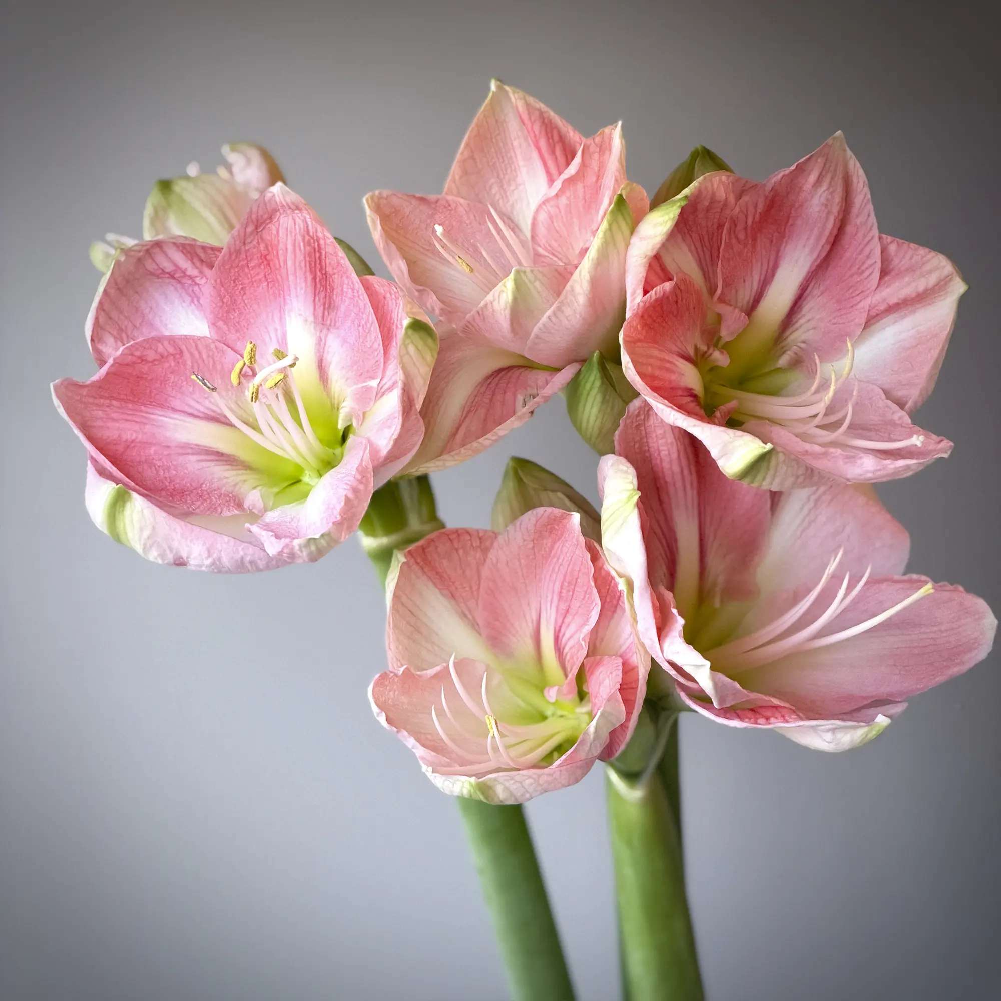 Розовый амариллис — элегантное украшение для любых композиций! Крупные воронкообразные цветы с глянцевыми лепестками создают ощущение роскоши. Отлично подходит для монобукетов, праздничных украшений, флористического дизайна. Оптовые поставки для салонов и декораторов.