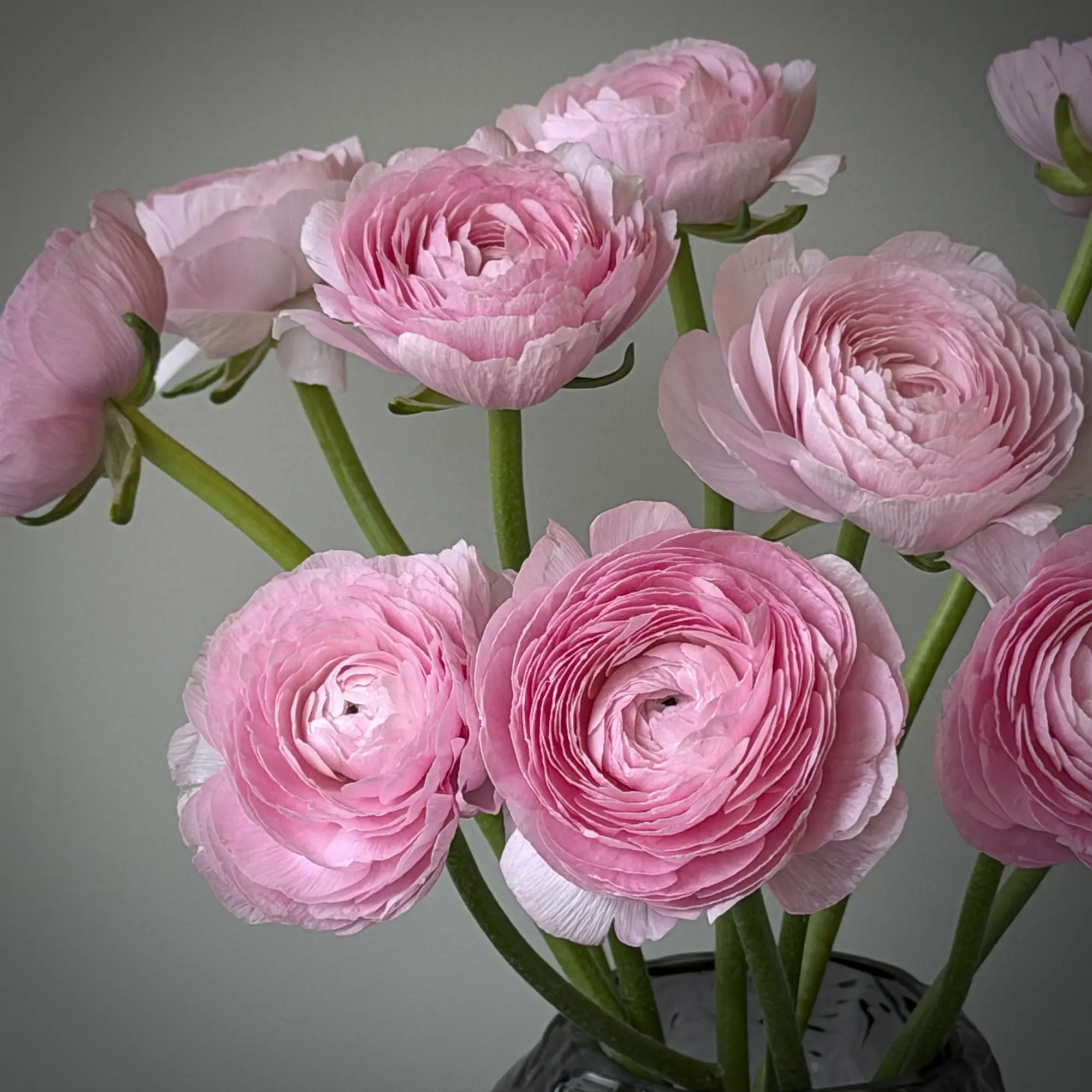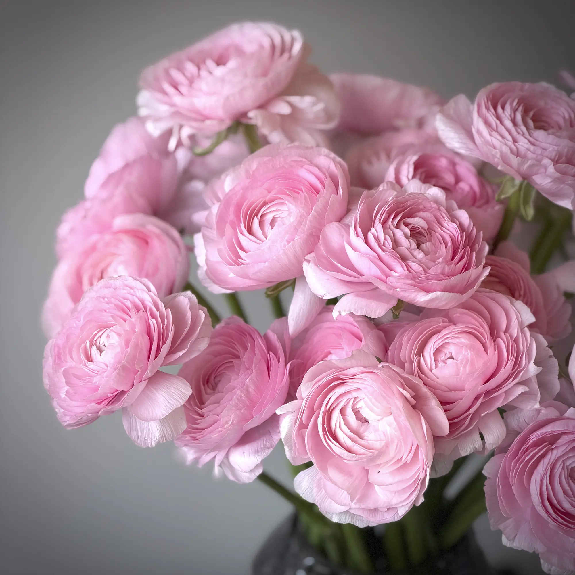 Нежные розовые ранункулюсы — изысканное украшение для букетов и композиций. Пышные бутоны с многослойными лепестками создают романтичный акцент. Отлично сочетаются с другими цветами. Идеальны для оптовых закупок для флористических салонов, свадебных декораций, оформления мероприятий.