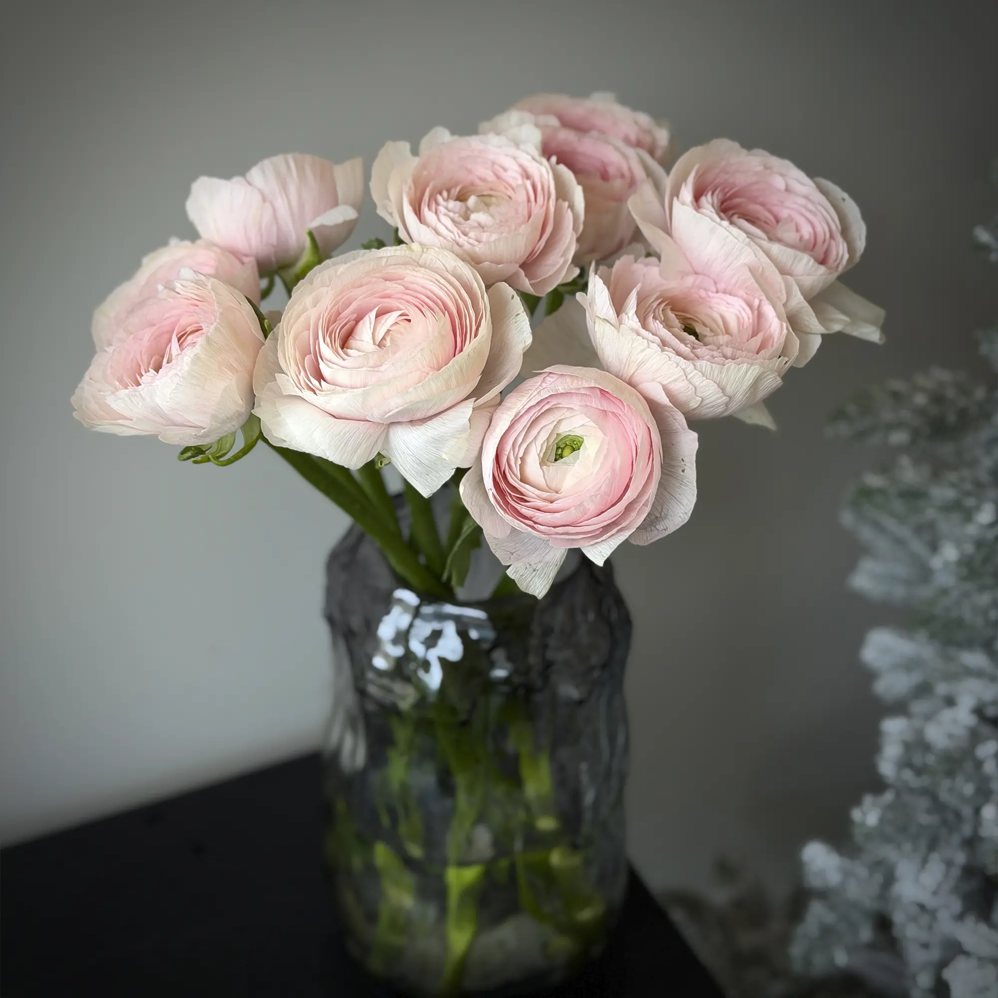Нежные розовые ранункулюсы — изысканное украшение для букетов и композиций. Пышные бутоны с многослойными лепестками создают романтичный акцент. Отлично сочетаются с другими цветами. Идеальны для оптовых закупок для флористических салонов, свадебных декораций, оформления мероприятий.