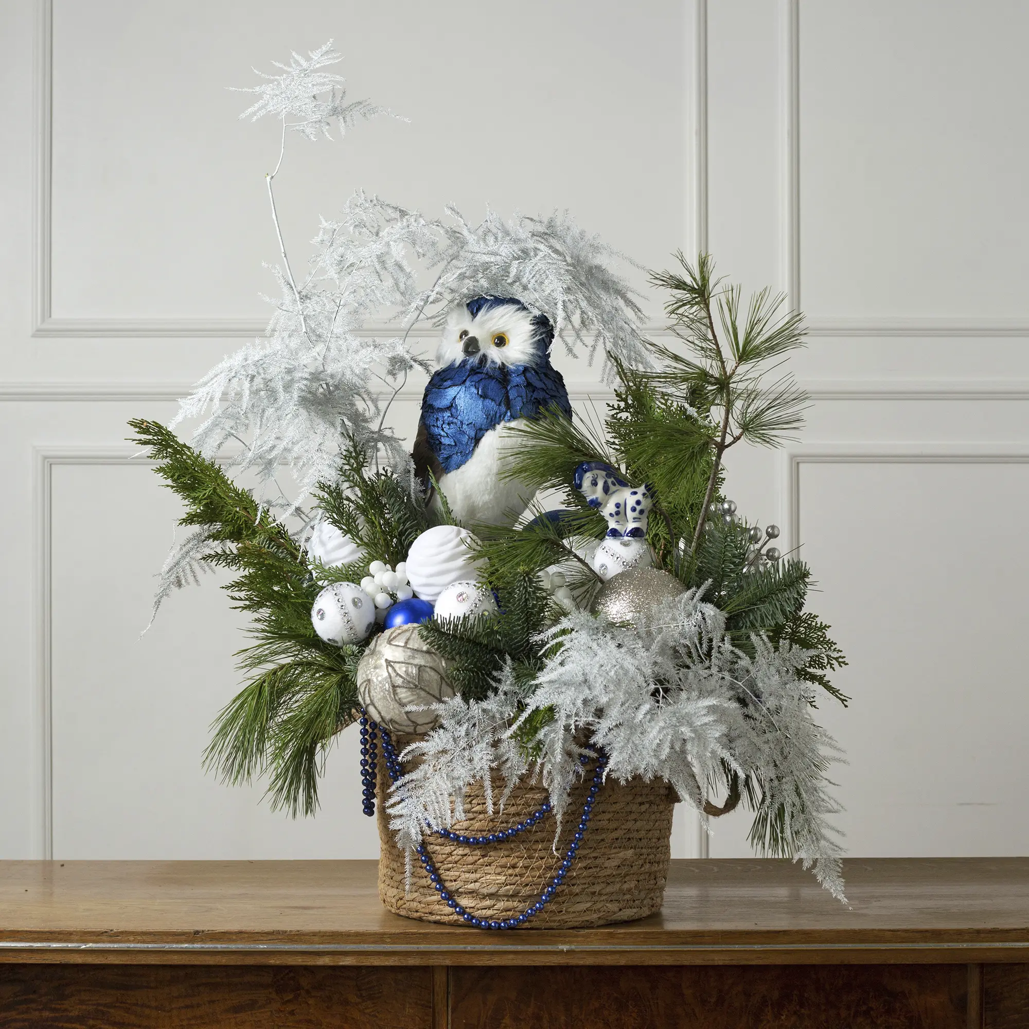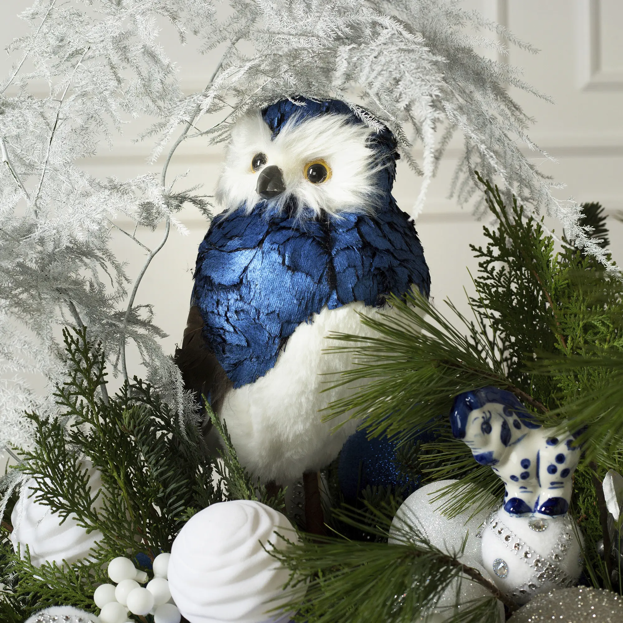 Милая композиция с совой из белых и синих шаров. Добавит уюта в гостиной или прихожей.
