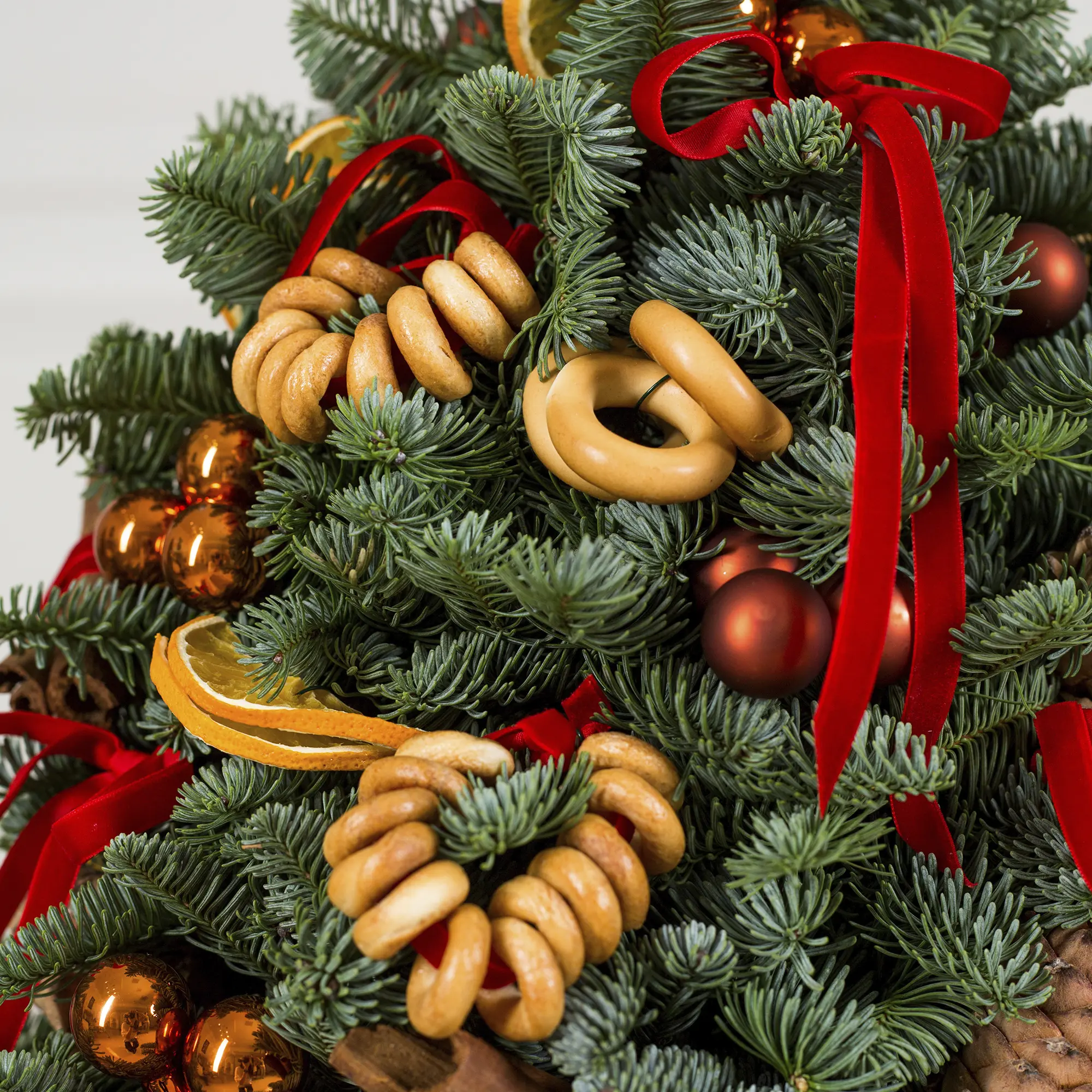 Позвольте себе окунуться в атмосферу зимних праздников с нашей изысканной новогодней композицией! Центральным элементом служит миниатюрная ёлочка из свежей хвои, оформленная с особым шармом и вниманием к деталям.