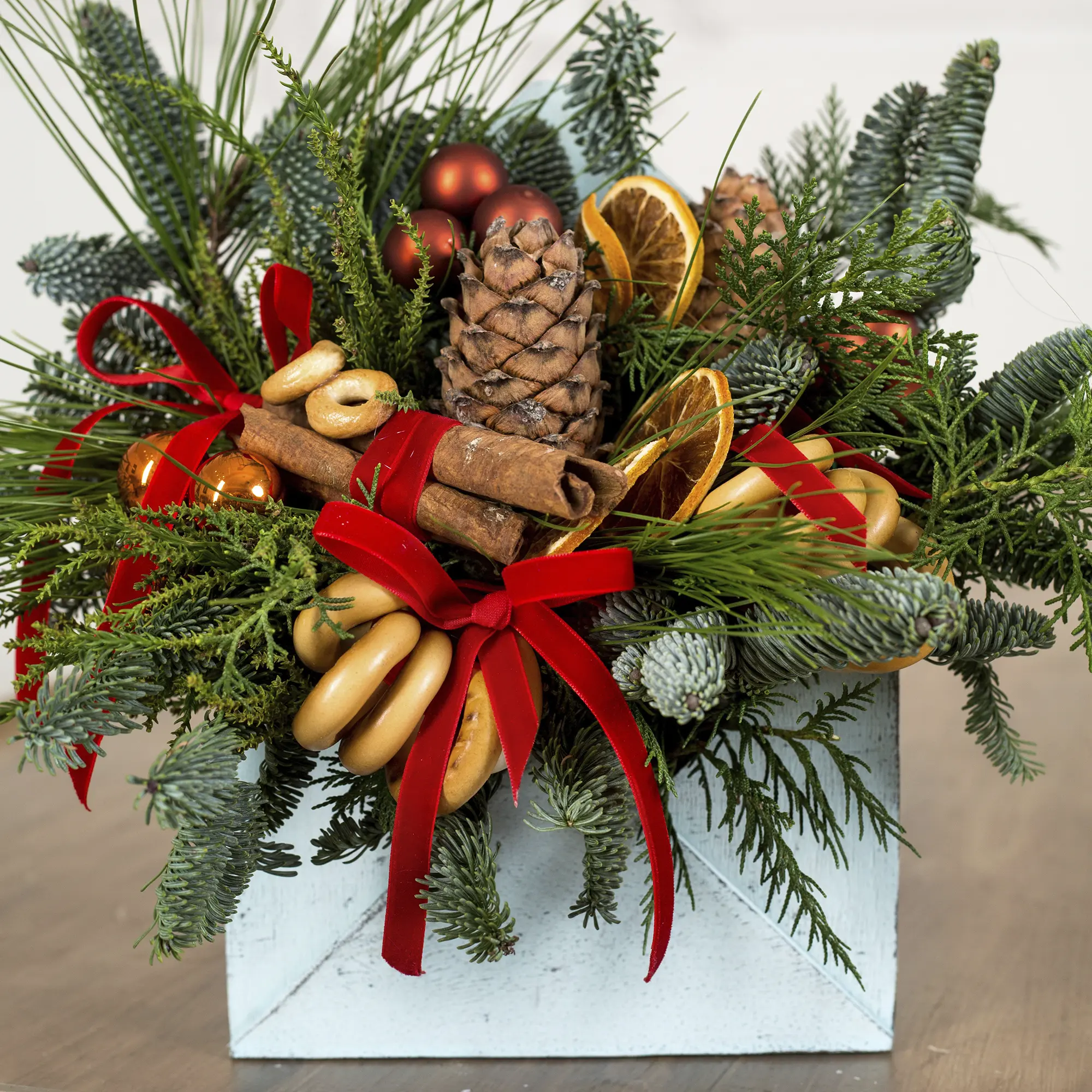 Позвольте этой изысканной композиции наполнить ваш дом атмосферой уюта и праздничного волшебства! Гармоничное сочетание природных элементов и праздничного декора создаёт неповторимый образ, который станет украшением любого интерьера.