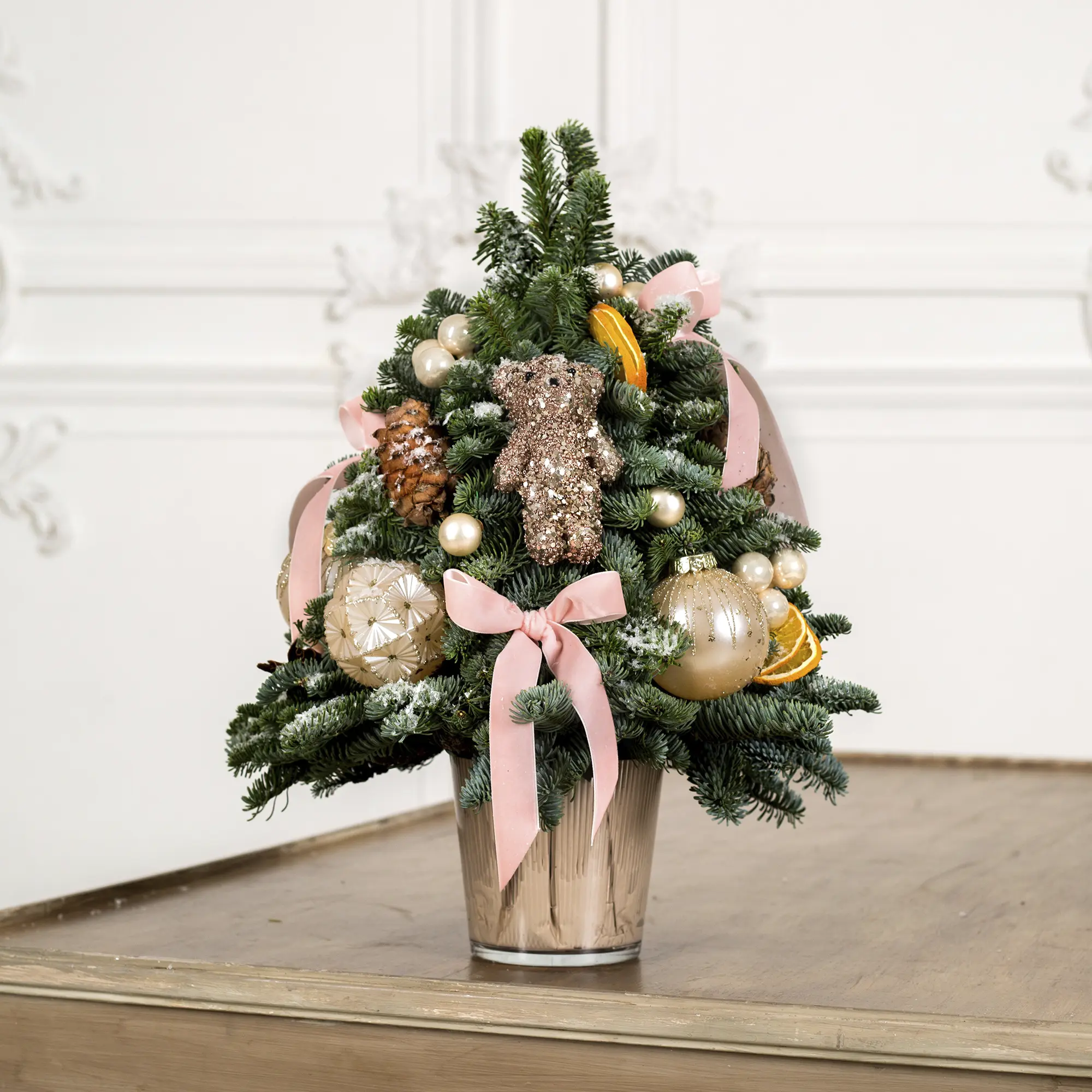 Укутайте свой дом атмосферой волшебства с нашей изысканной новогодней композицией! В центре внимания — миниатюрная ёлочка из благородной хвои нобилиса, украшенная с особым шармом и вкусом.