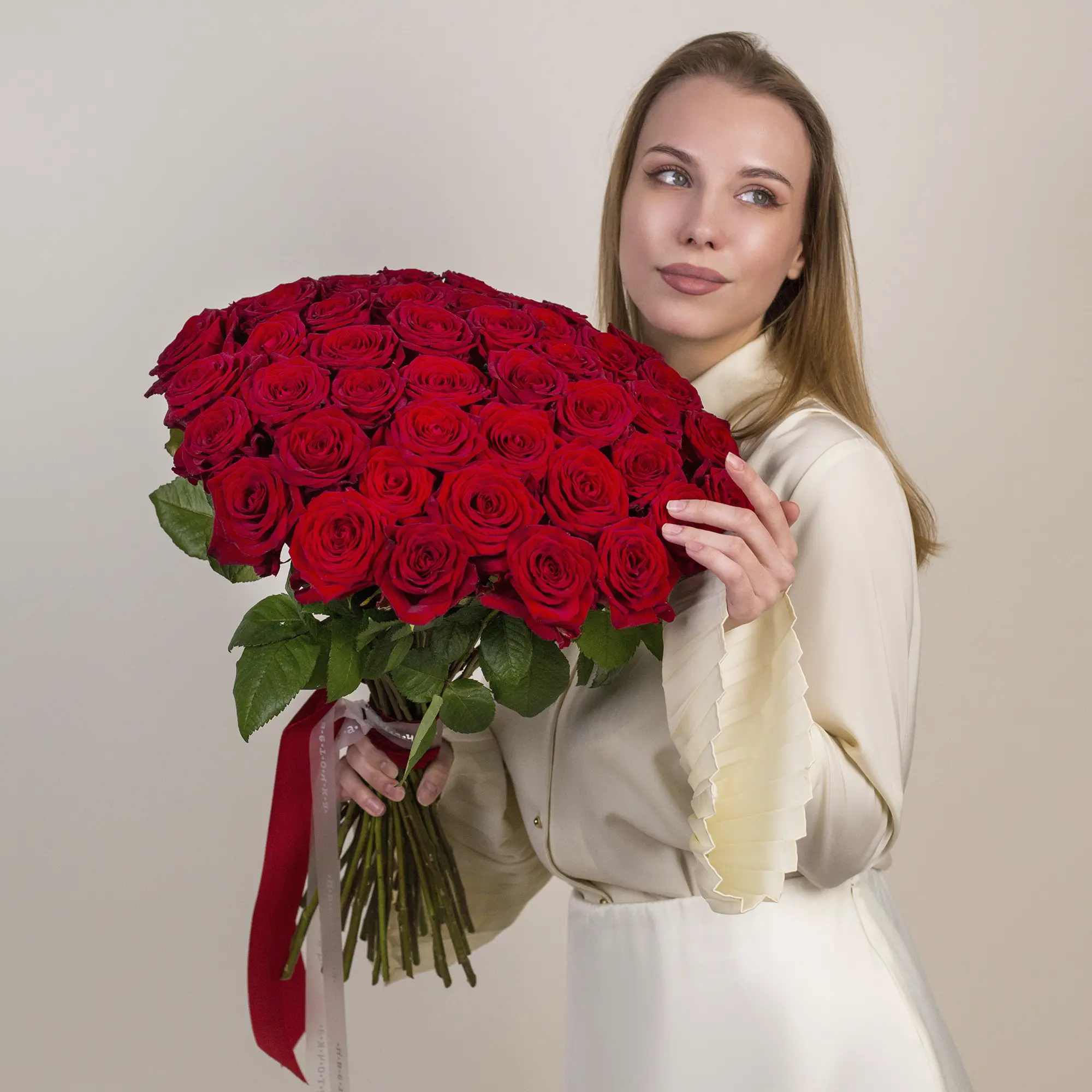 Букет из 45 красных роз №2331 самого большого размера