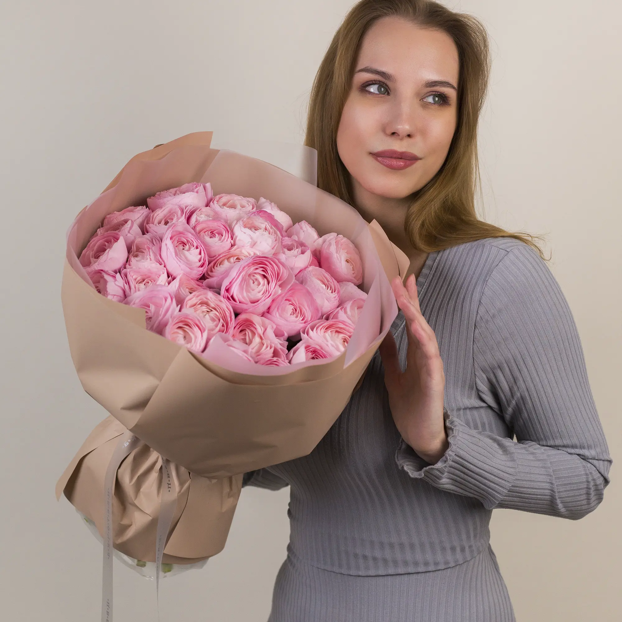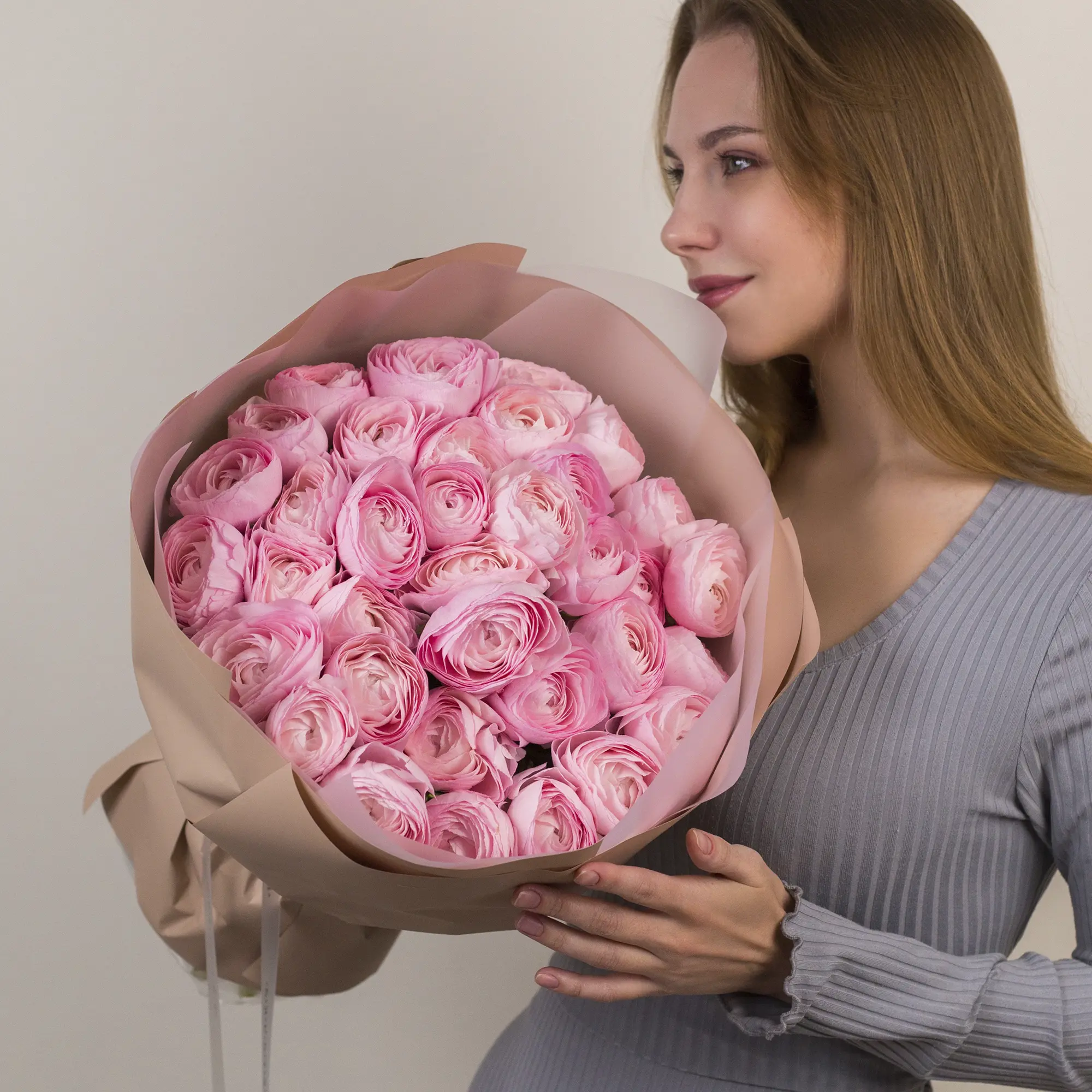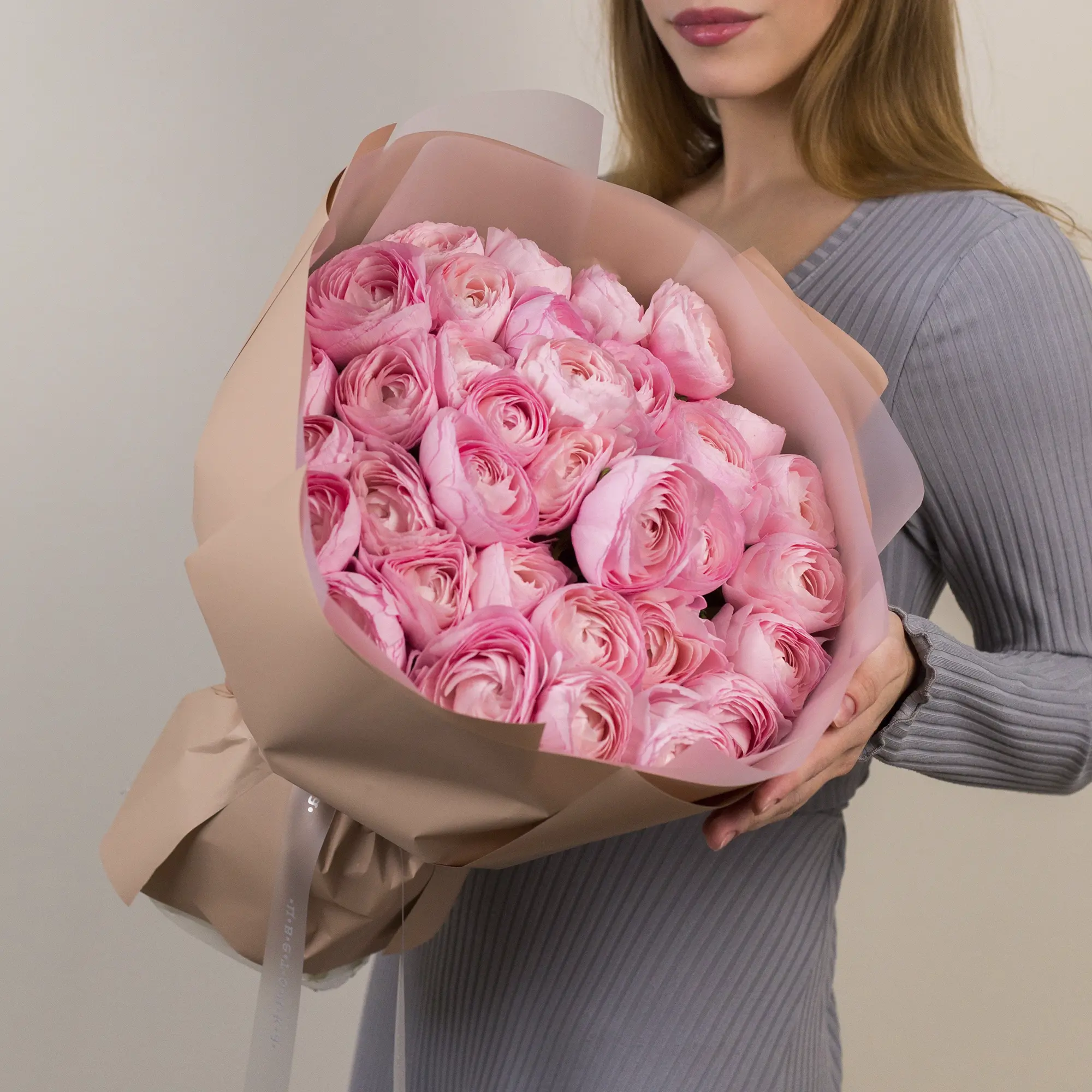 Букет из 35 розовых ранункулюсов №2353 большого размера