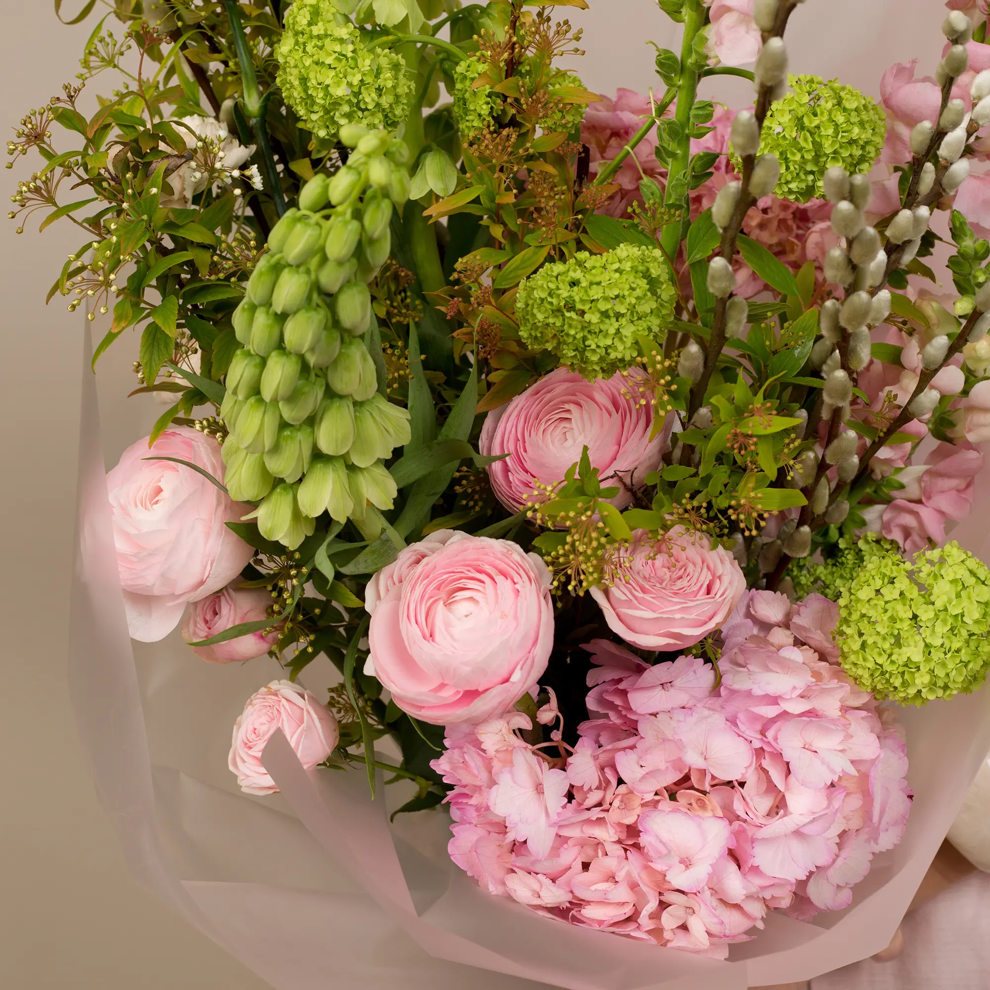 Букет из фритиллярии, гортензий и ранункулюсов №2395 самого большого размера