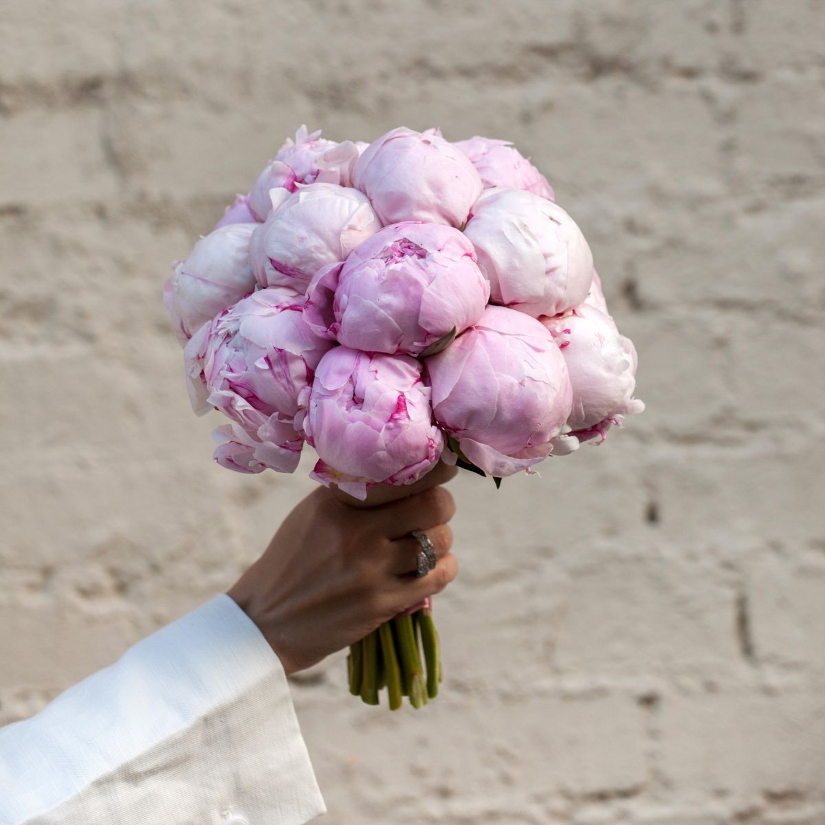Невероятно нежный, женственный и эффектный букет, который гарантированно украсит собой любой образ невесты. Пионы в свадебной флористике пользуются заслуженной популярностью: их ажурные, ароматные бутоны формируют плотный цветочный купол, сохраняя эффект легкости, воздушности. В работе использованы пионы нежно-зефирного оттенка – универсальный вариант для торжеств в любом стиле. Хорошая, стильная альтернатива классическим букетам из роз, альстромерий, гортензий. Благодаря небольшим габаритам букет удобно держать в руке, что немаловажно в свадебном образе.