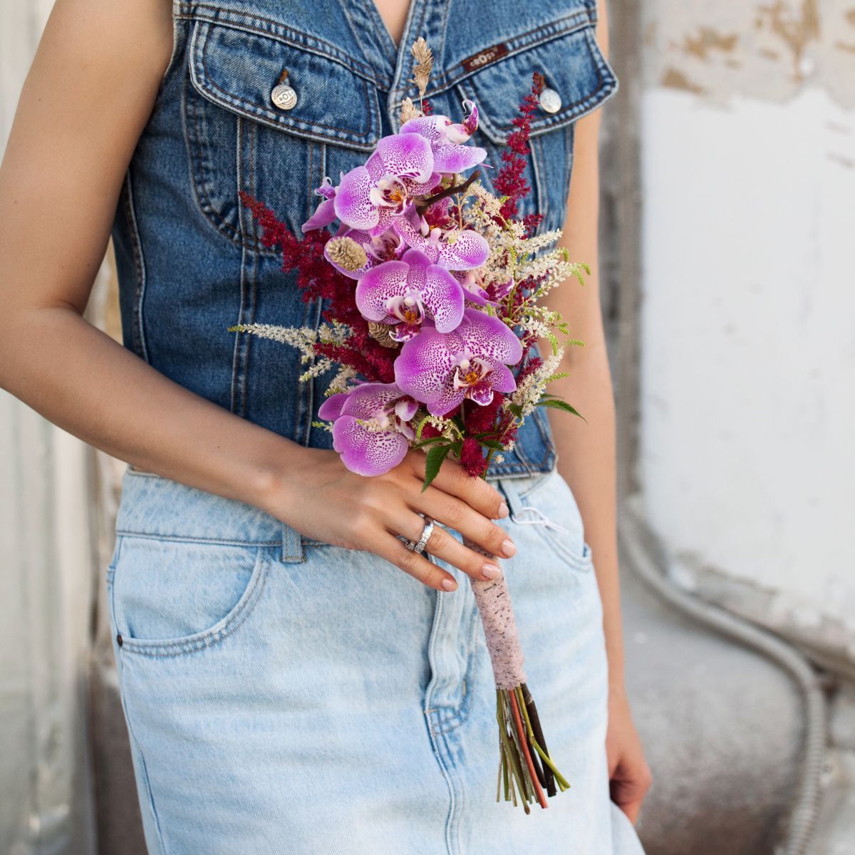 Элегантный, нежный, оригинальный букет для невест, которые предпочитают креатив и выбирают небанальные композиции. Орхидеи в свадебном букете выглядят стильно, роскошно, свежо. Для работы выбрана яркая цветовая гамма, благодаря чему такой букет станет отличным украшением и ярким акцентом в образе, добавив в него романтичные ноты. Отличное решение для смелых, женственных, харизматичных и утонченных невест. Беспроигрышный выбор для стилизованных свадеб. Компактный, аккуратный размер букета делает его максимально удобным.