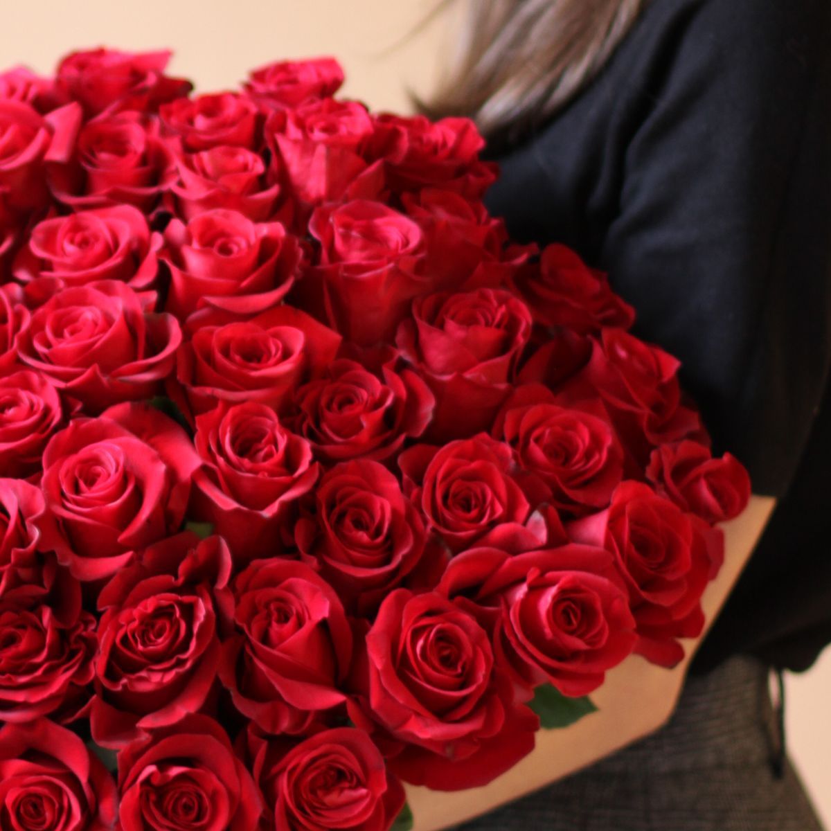 Букет из роз бордового цвета – классика, которая никогда не исчезнет. 51 штука красивых цветков буквально горит, наполняя пространство любовью и страстью. Поздравить яркой композицией можно с днем рождения, юбилеем, годовщиной и другими праздниками, на которых важно произвести впечатление. Изящество бутонов не стоит скрывать под упаковкой, поэтому мы перевязали поздравление лентой алого оттенка. Внутри свежих цветов лежит открытка для пожеланий. Предлагаем купить подарок с доставкой к событию. Доступные размеры сборки, фото и цены заказов вы найдете в каталоге интернет-магазина.