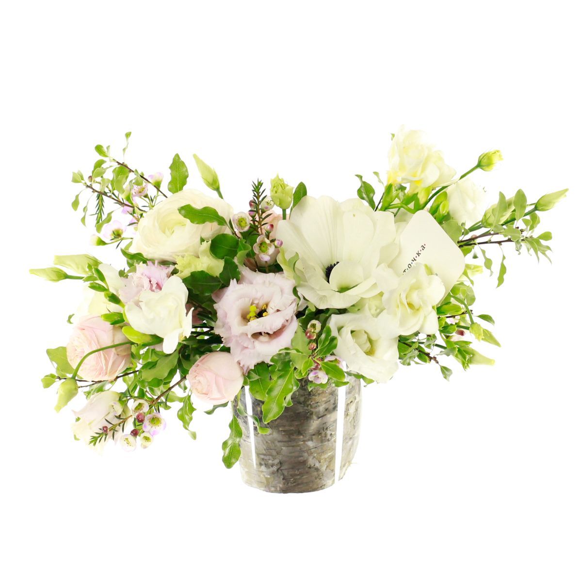 Ни один весенний праздник не обходится без цветов. Любящий мужчина знает, как порадовать любимую девушку, и для подарка выбирает нежно-розовый букет в необычной упаковке — деревянном кашпо. Изящные эустомы, милые фрезии, анемон и розы с веточками хамелациума и питтоспорума — воплощение весны со всей ее теплотой и трогательностью. Коробка из бересты добавляет в композицию природные мотивы: она вместе со свежими цветами наполнит дом хорошим настроением и праздничной атмосферой. Размер женского презента подбирайте по фото с ценами в каталоге, а мы добавим к заказу открытку для ваших пожеланий. Предлагаем купить сочетание с бесплатной доставкой за 2 часа.