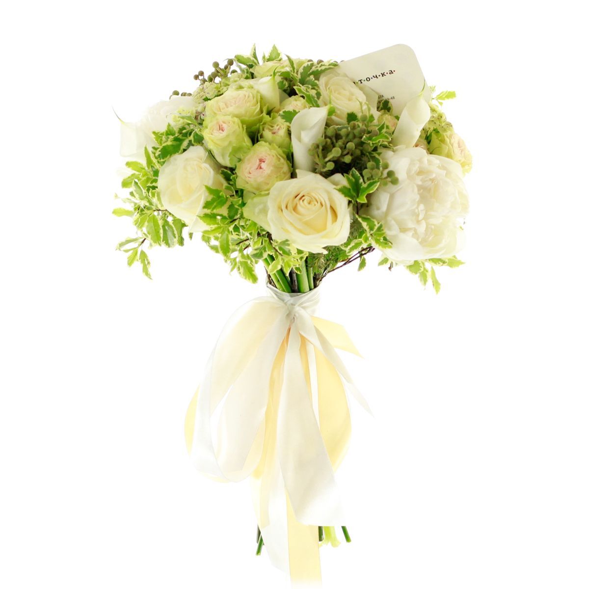 Классический круглый букет невесты в нежных оттенках — вариант, который подойдет под любое свадебное оформление и рост девушки. В композиции без упаковки объединились розы Эквадор и кустовые, каллы и пионы с цветками гвоздики и свежей зеленью питтоспорума. Под красивый букет в персиково-белом цвете на праздник можно купить бутоньерку. Легкость и воздушность образа невесты в счастливый день свадьбы подчеркнет и атласная лента, гармонирующая с цветами. Смотрите цены, размер и фото в каталоге, оформляйте заказ, а мы соберем сочетание для торжества с быстрой доставкой по городу.