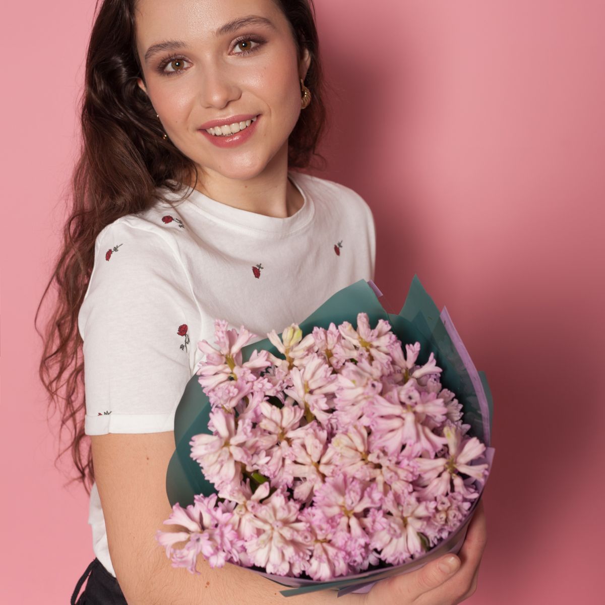 Оригинальный, необычный и эффектный букет, выполненный из красочных весенних гиацинтов сочно-розового цвета. Это небанальное решение, способное произвести должное впечатление и подарить множество приятных эмоций. Работа представлена в среднем размере, идеально подходит в качестве презента на любой праздник, как комплимент или знак внимания без повода. Великолепный выбор для романтических сюрпризов. Удачный вариант для тех, кто предпочитает оригинальные, необычные букеты и ценит свежие идеи в современной флористике.