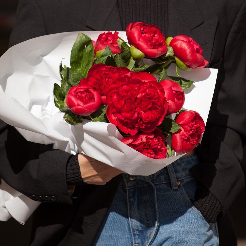 Роскошный букет из крупных, ароматных пионов насыщенного винного оттенка - отличный вариант для стильных, элегантных и ярких поздравлений по любому поводу. Благородный оттенок бутонов делает эту работу статусной, эффектной, по-деловому лаконичной. Композиция представлена в универсальном, практичном среднем размере. Оформлен букет в классическом стиле: благодаря белоснежной основе лепестки бордовых пионов выглядят особенно нарядно, колоритно и презентабельно. Достойный выбор для букета, который должен произвести впечатление.
