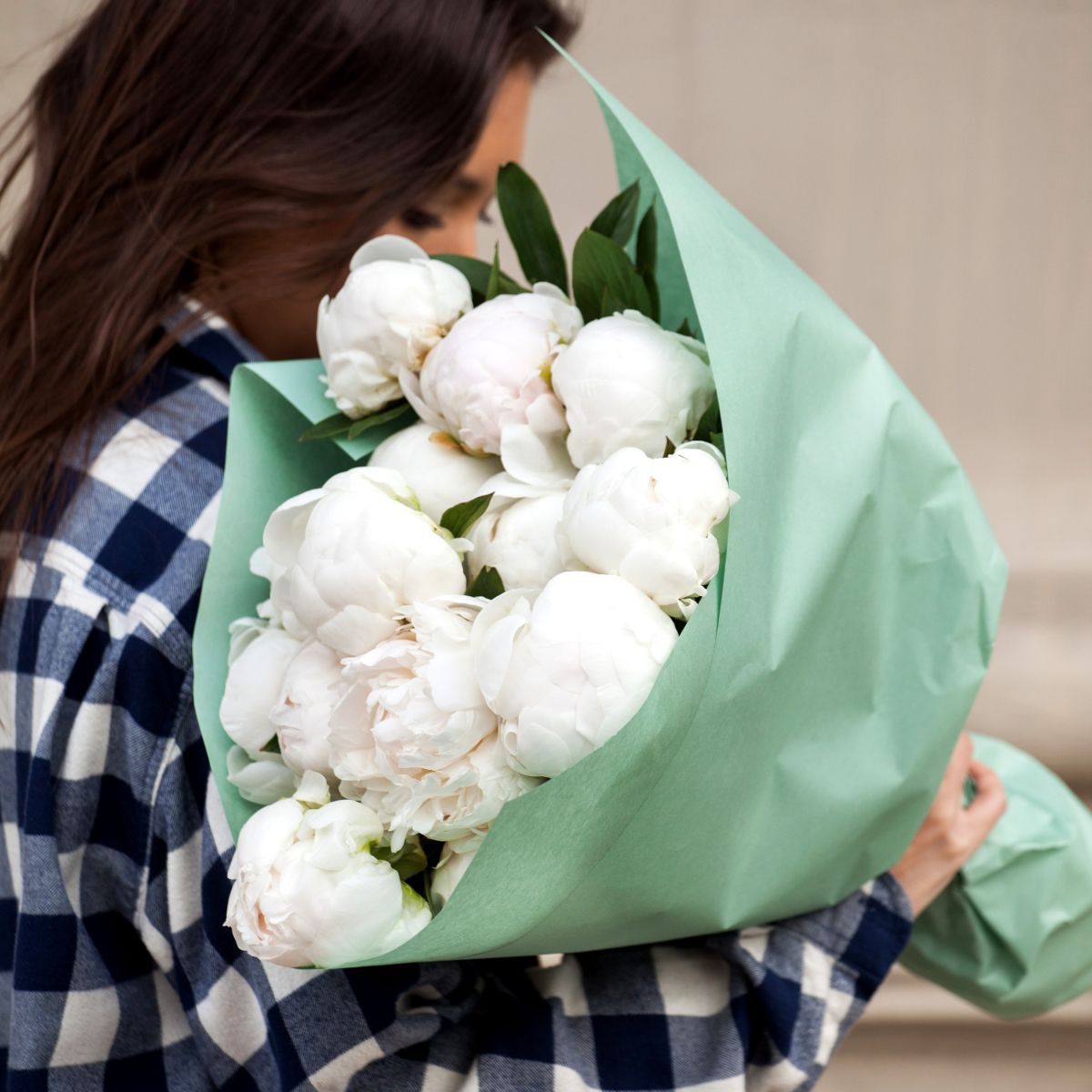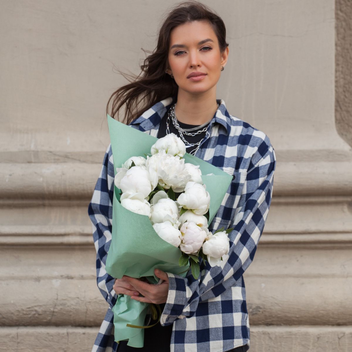 Романтичная, нежная и стильная композиция из очаровательных белоснежных пионов – удачный вариант для красивых знаков внимания, изящных комплиментов или колоритных поздравлений по любому поводу. Работа оформлена в классическом стиле, для которого выбрана контрастная насыщенно-бирюзовая основа. На этом фоне бутоны пионов выглядят особенно колоритно, свежо и демонстративно роскошно. Отличный вариант лаконичного монобукета, который гармонично впишется в любой формат праздника, мероприятия, события, достойно украсив их.