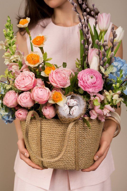 Собрали цветочные композиции к празднику Светлой Пасхи, в которых сочетаются нежность, лёгкость и весеннее настроение.